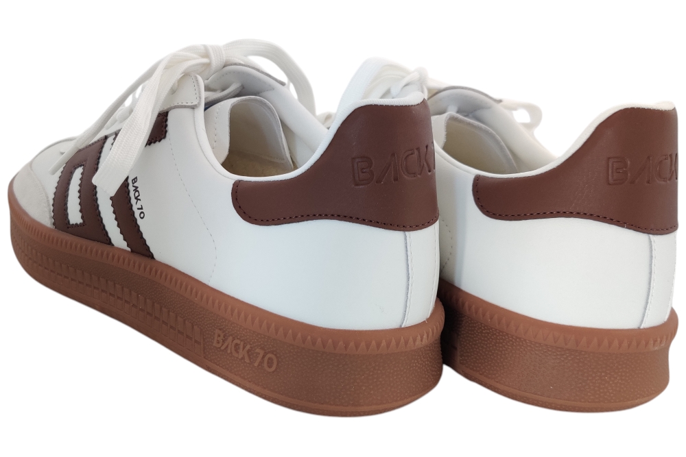 Heren sneaker van Back 70. Sneaker in het wit bruin combi. Deze sneaker heeft een uitneembaar voetbed. Materiaal: leer . Voering: stof. Kleur: wit bruin combi. Zool: rubber. Hakhoogte: ca 3 cm.