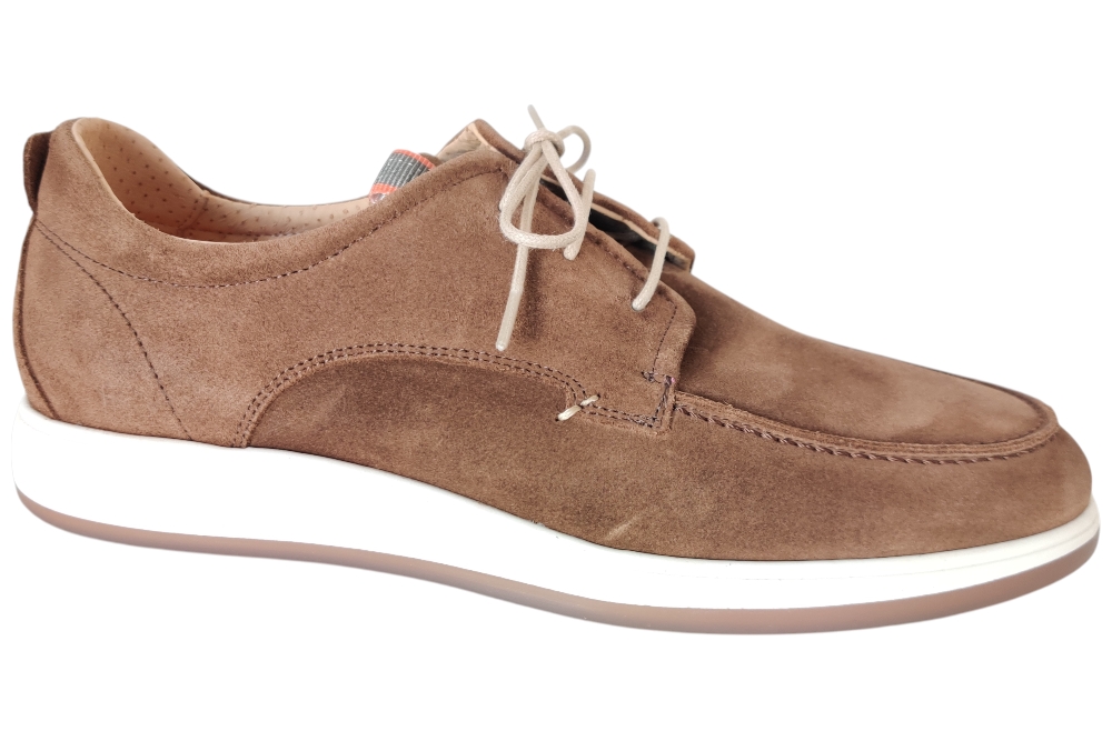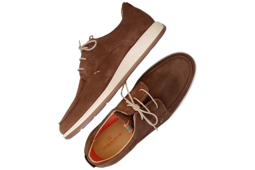 Heren veterschoen van Berkelmans. Basic nette casuele veterschoen. Materiaal: suede. Voering:leer.Veterschoen heeft een losse binnenzool, Kleur:bruin. Zool: rubber. Hakhoogte: ca 3 cm.