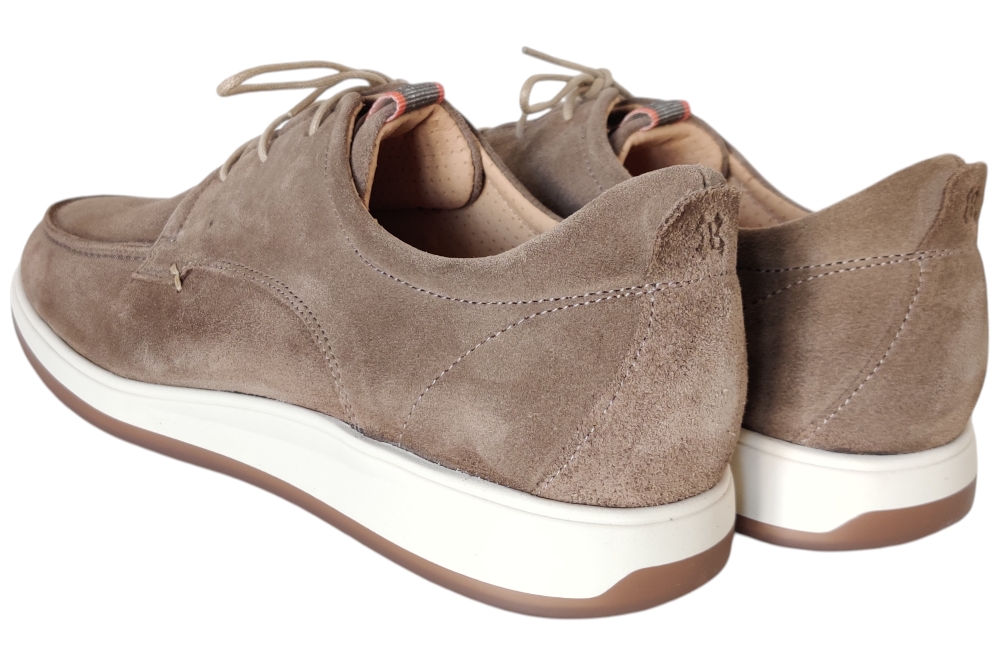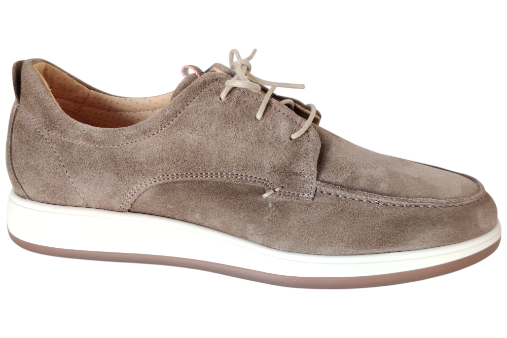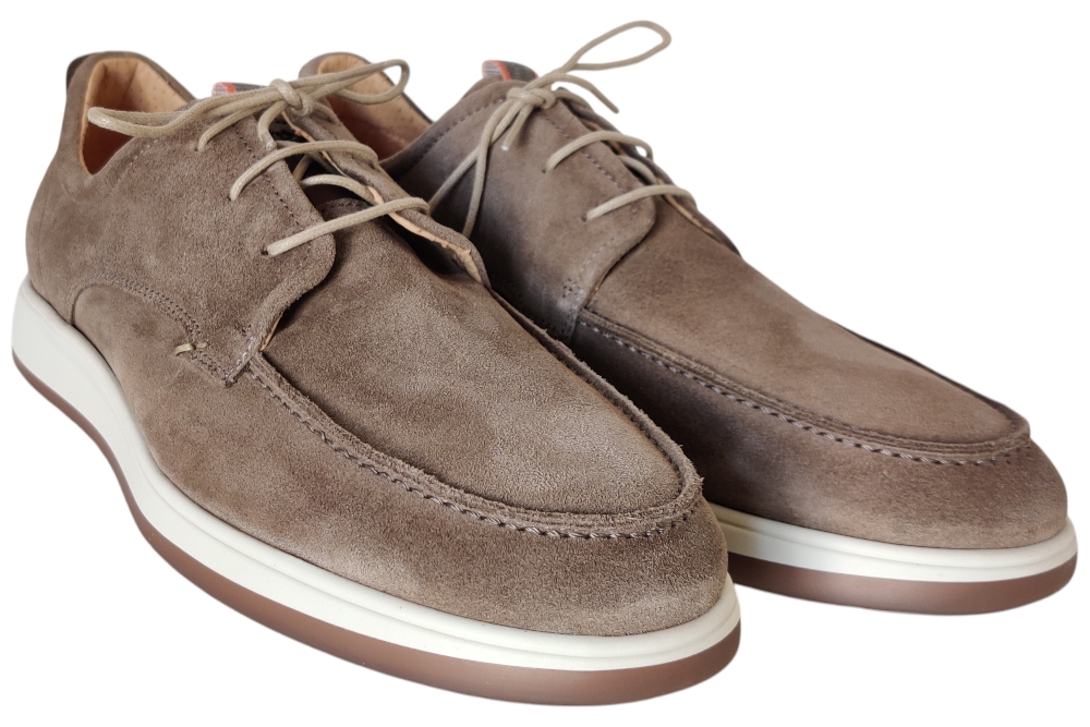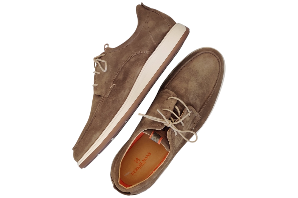 Heren veterschoen van Berkelmans. Basic nette casuele veterschoen. Materiaal: suede. Voering:leer.Veterschoen heeft een losse binnenzool, Kleur:taupe. Zool: rubber. Hakhoogte: ca 3 cm.