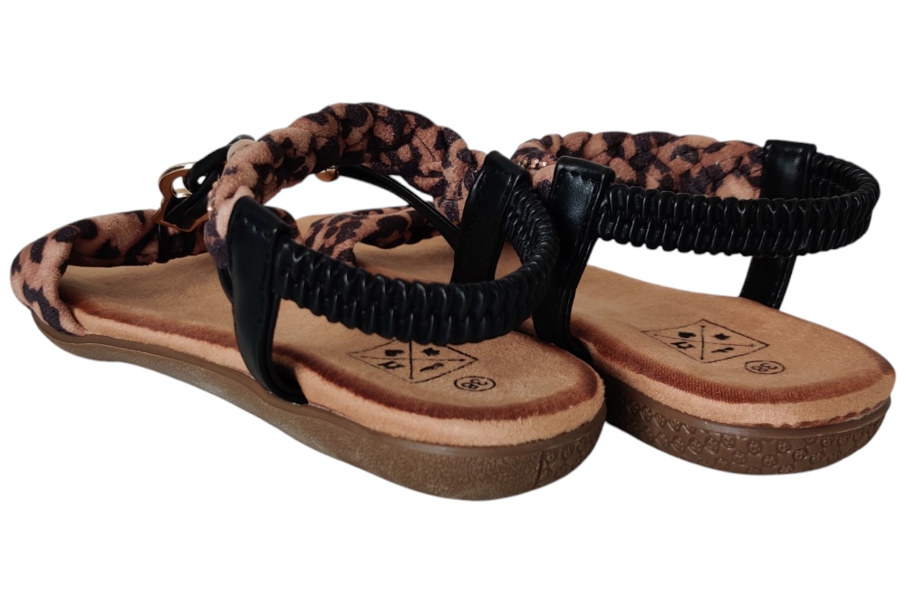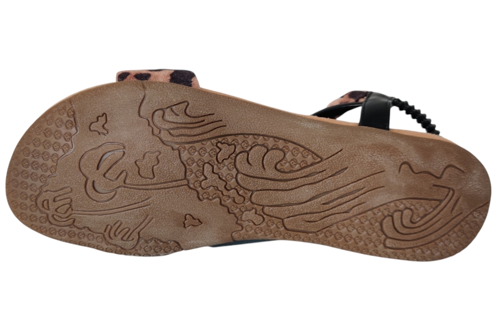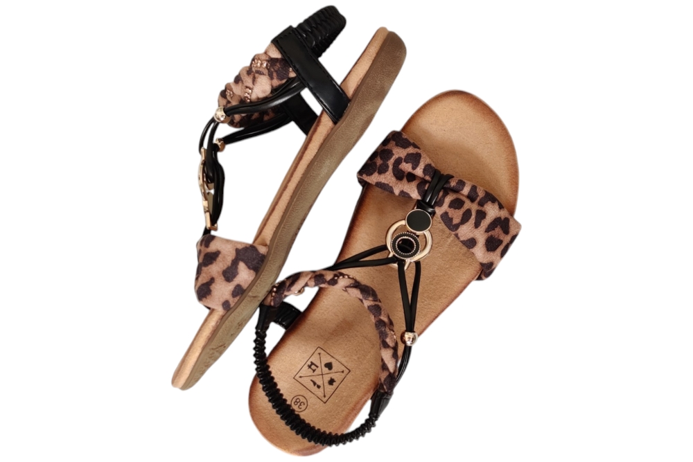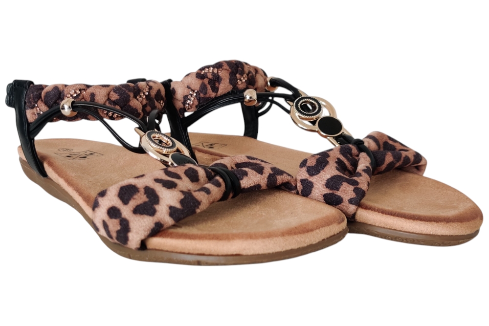 Sandaal van Bridge Footwear.Leuke elegante sandaal met wreef band en stras steentjes.Matriaal stof. Voering stof. Kleur bruin combi. Zool rubber ca 1 cm.