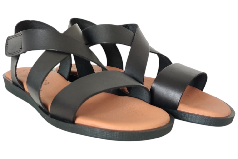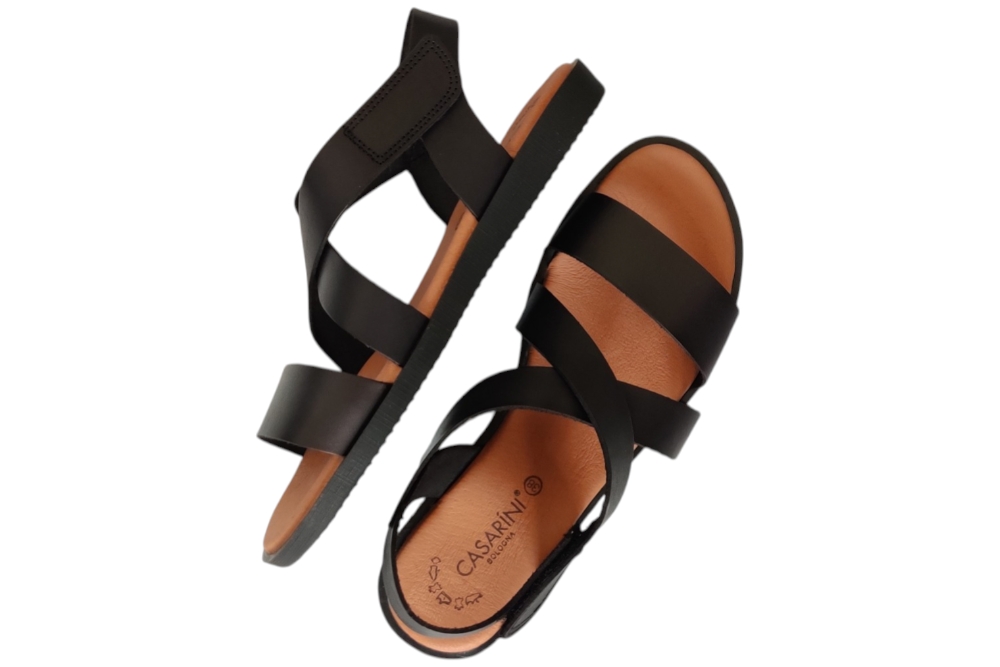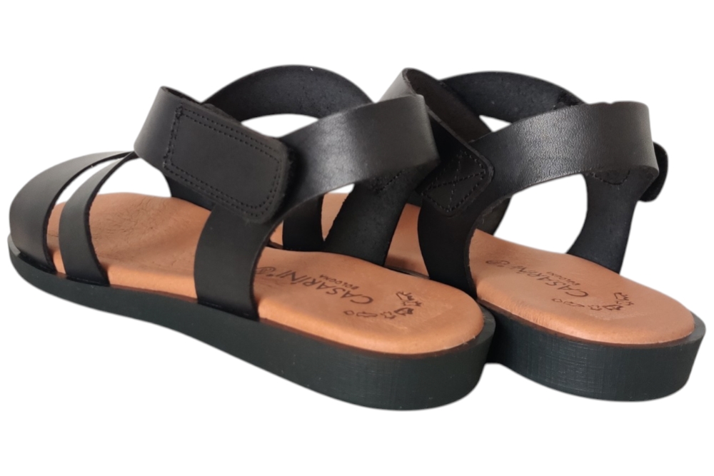Sandaal van Casarini. Elegante sandaal met zachte zool en een klitteband sluiting.Matriaal leer.Voering leer. Kleur zwart. Loopzool rubber ca 2 cm.