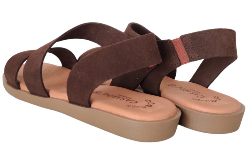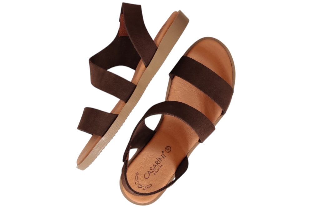 Sandaal van Casarini. Elegante sandaal met zachte zool en een klitteband sluiting.Matriaal suede.Voering leer. Kleur bruin. Loopzool rubber ca 2 cm.