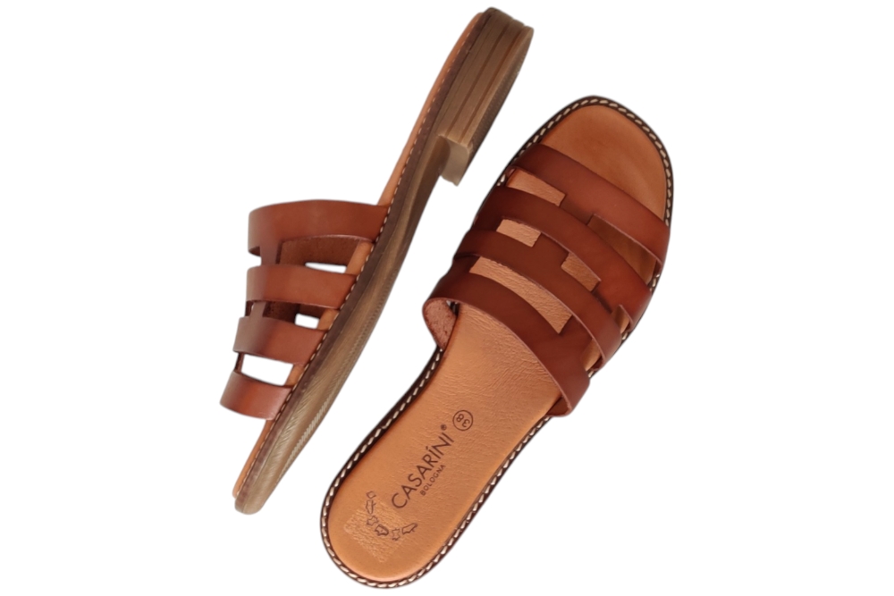 Slipper van Casarini. Elegante slipper met zachte zool..Matriaal leer.Voering leer. Kleur bruin. Loopzool rubber ca 2 cm.