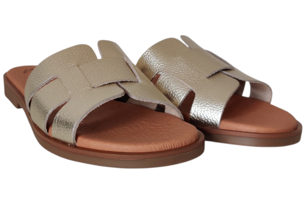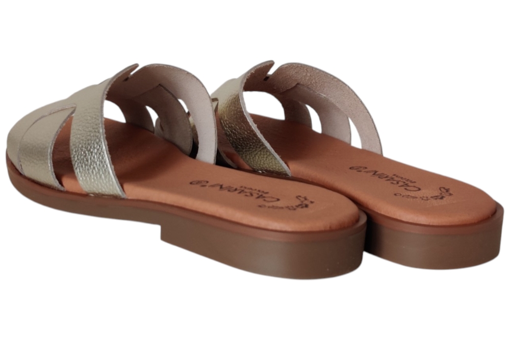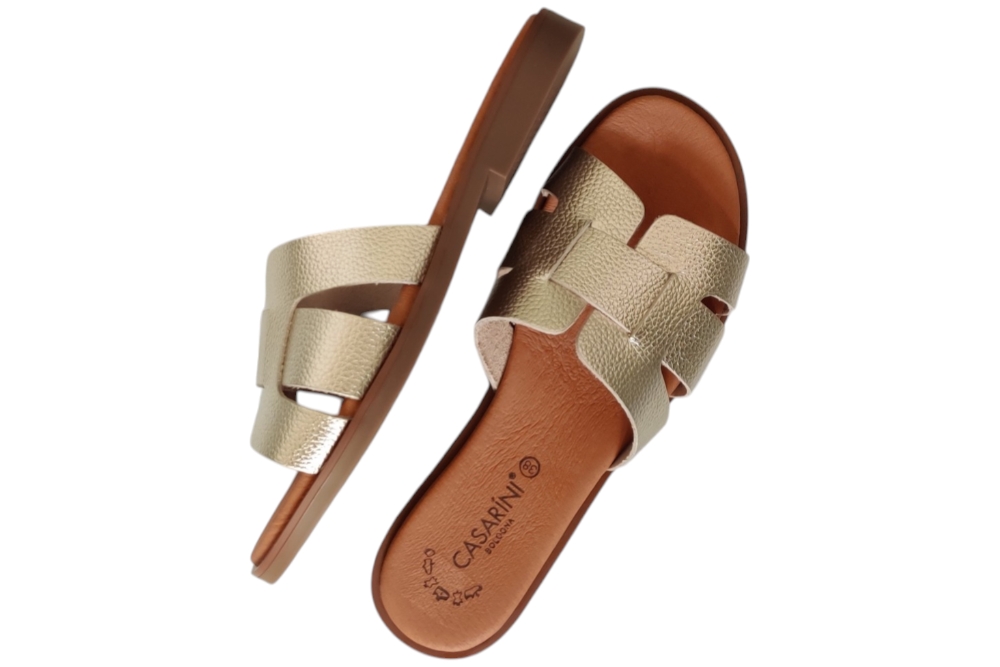 Slipper van Casarini. Elegante slipper met zachte zool..Matriaal leer.Voering leer. Kleur goud. Loopzool rubber ca 2 cm.