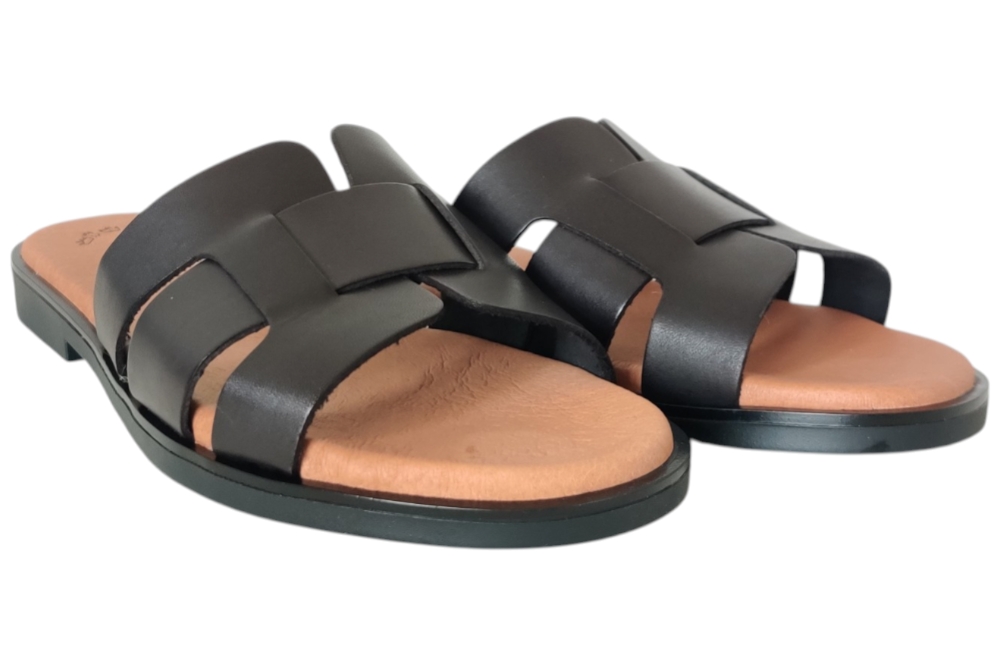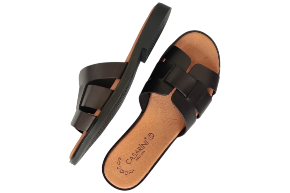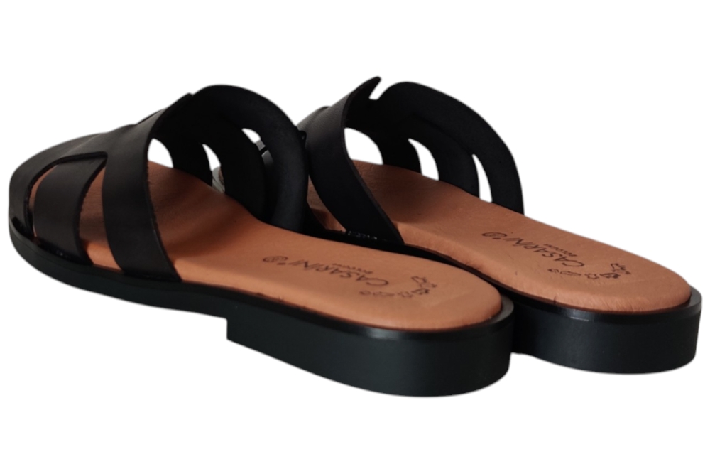 Slipper van Casarini. Elegante slipper met zachte zool..Matriaal leer.Voering leer. Kleur zwart. Loopzool rubber ca 2 cm.