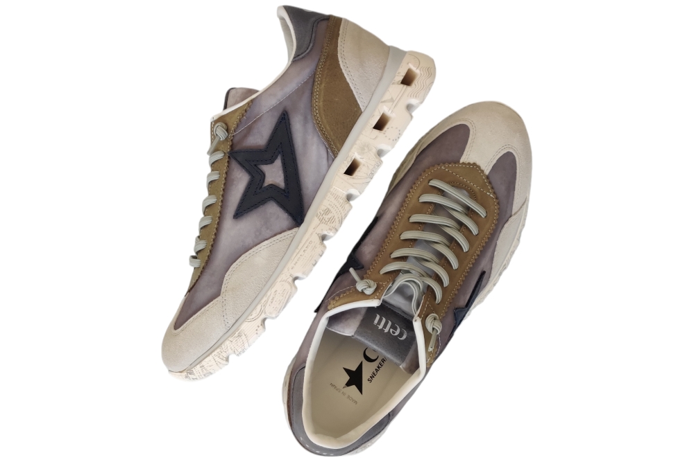 Sneaker van Cetti. Hippe sneaker op een ligte zool super comfortabel met elastische veter. Kleur grijs..Matriaal suede .Voering leer stof.Deze sneaker heeft een losse binnenzool. Zool rubber ca 3 cm.