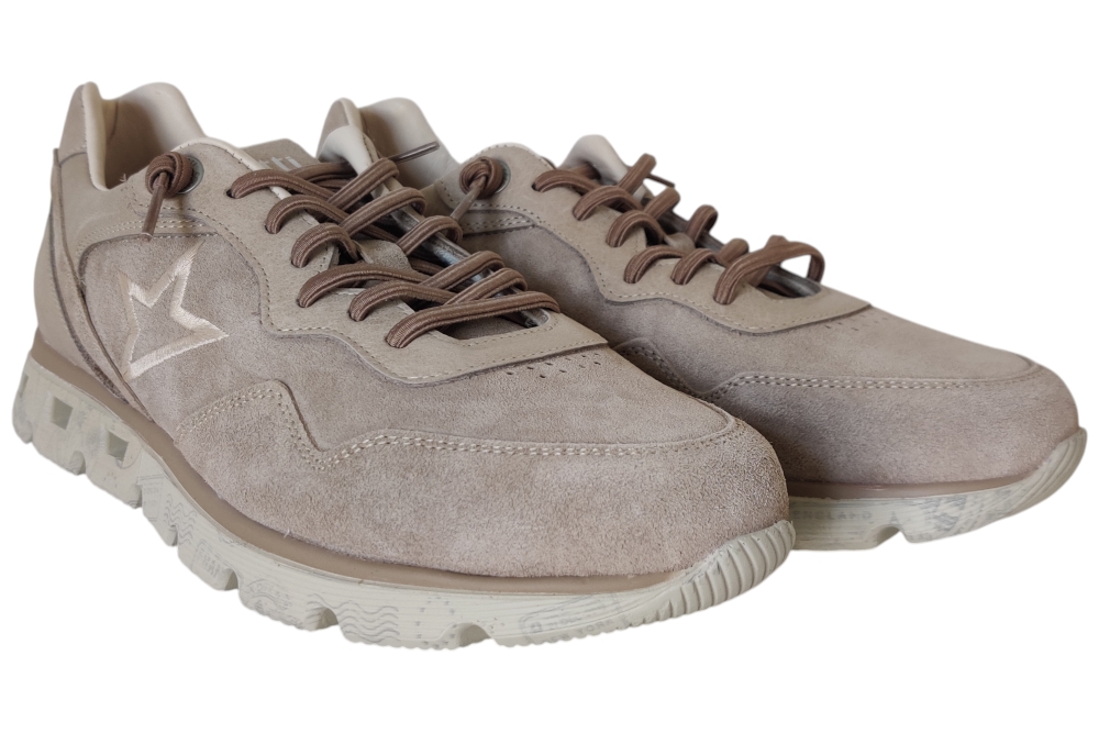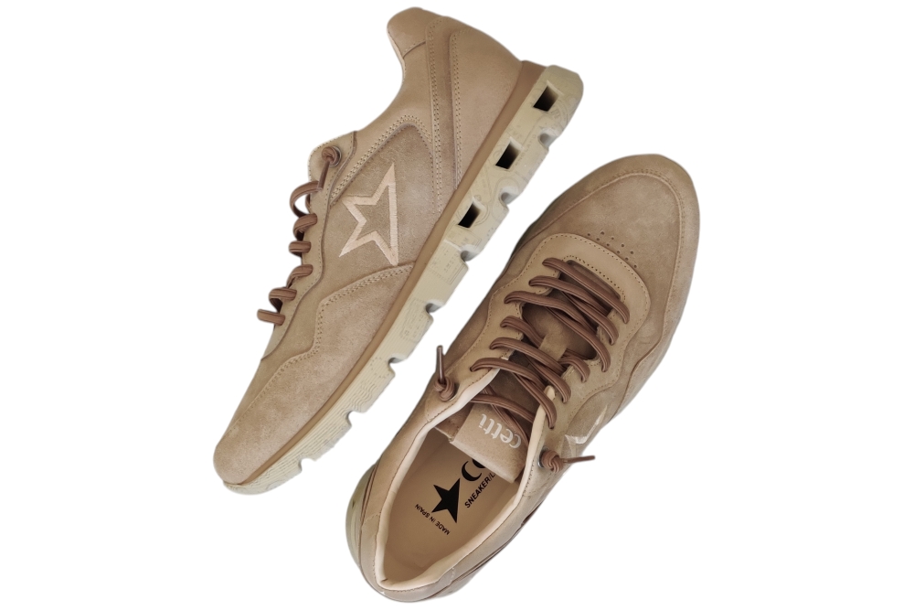 Sneaker van Cetti. Hippe sneaker op een ligte zool super comfortabel met elastische veter. Kleur beige..Matriaal suede .Voering leer stof.Deze sneaker heeft een losse binnenzool. Zool rubber ca 3 cm.