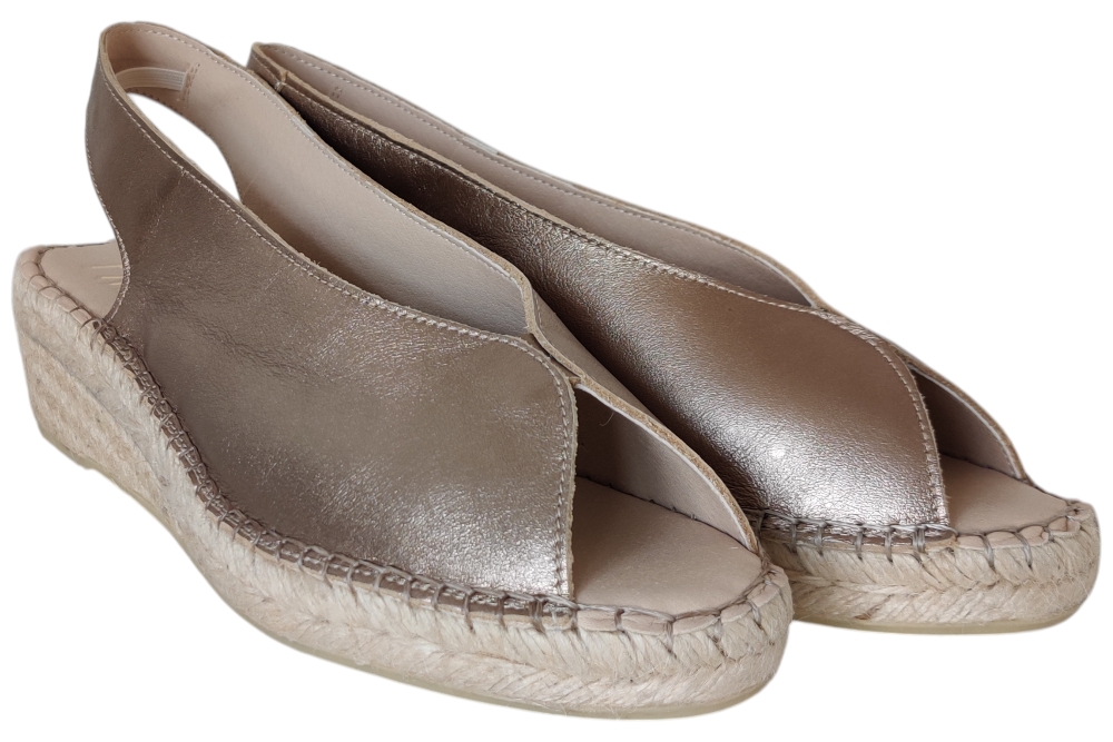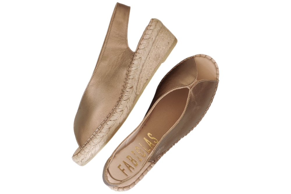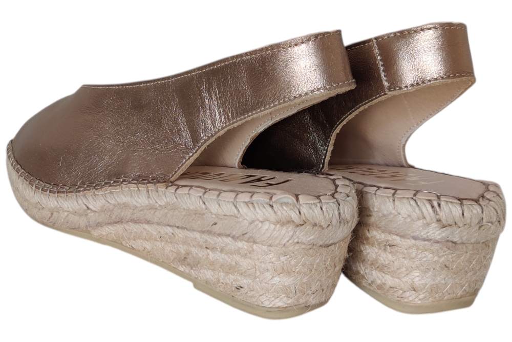 Sandaal van Fabiolas. Soepele sandaal in espedrile stijl op zacht voetbed. Matriaal suede.Kleur brons. Voering leer. Zool rubber ca 4 cm