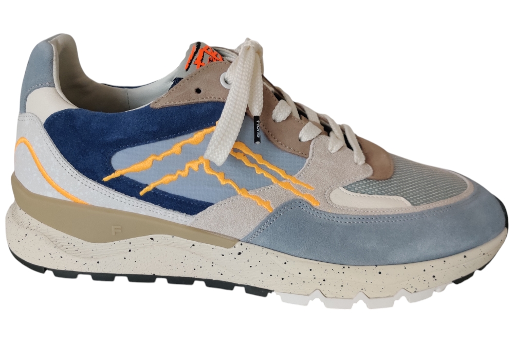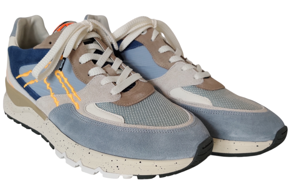 Heren sneaker van Floris van Bpommel. Basic multi color sneaker. Materiaal: suede combi. Voering:leer, met een losse binnenzool, Kleur: blauw.Leest G½ Zool: rubber. Hakhoogte: ca 3 cm.