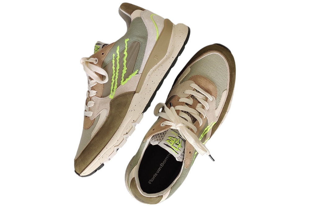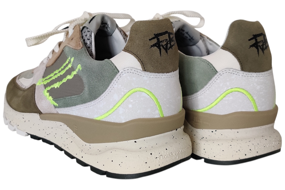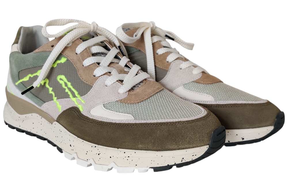 Heren sneaker van Floris van Bpommel. Basic multi color sneaker. Materiaal: suede combi. Voering:leer, met een losse binnenzool, Kleur: groen.Leest G½ Zool: rubber. Hakhoogte: ca 3 cm.