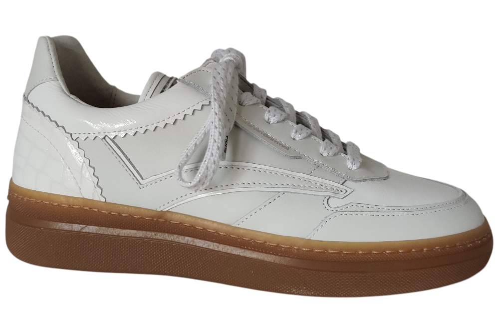 Dames sneaker van Floris van Bommel. Sportieve sneaker in verschillende materialen. Materiaal: leer combi. Voering: leer. Losse binnenzool.Kleur: wit. Zool: rubber. Hakhoogte: ca 3 cm.