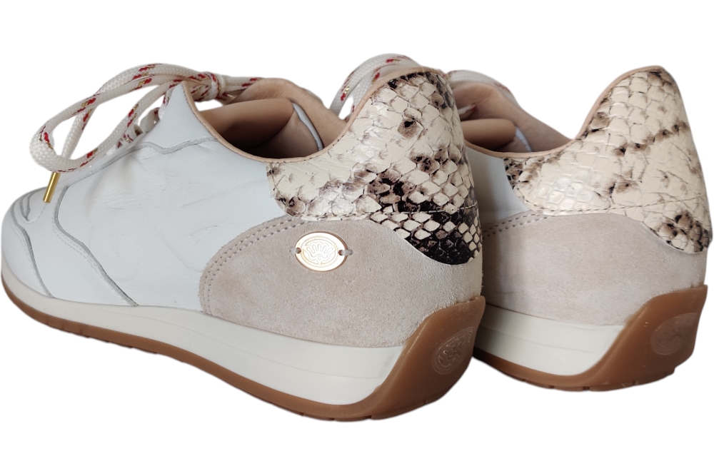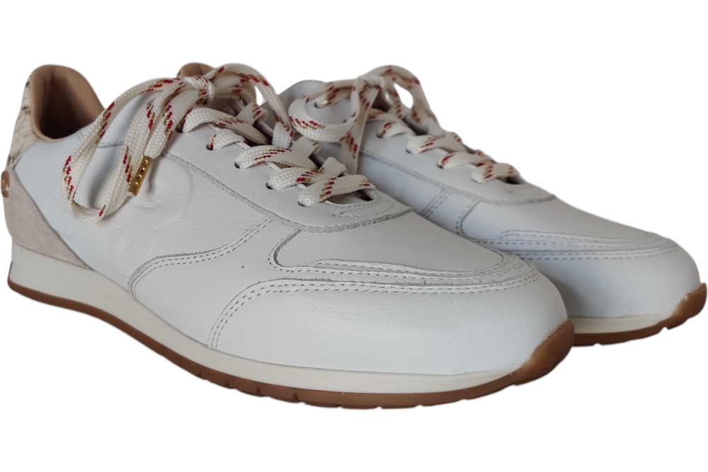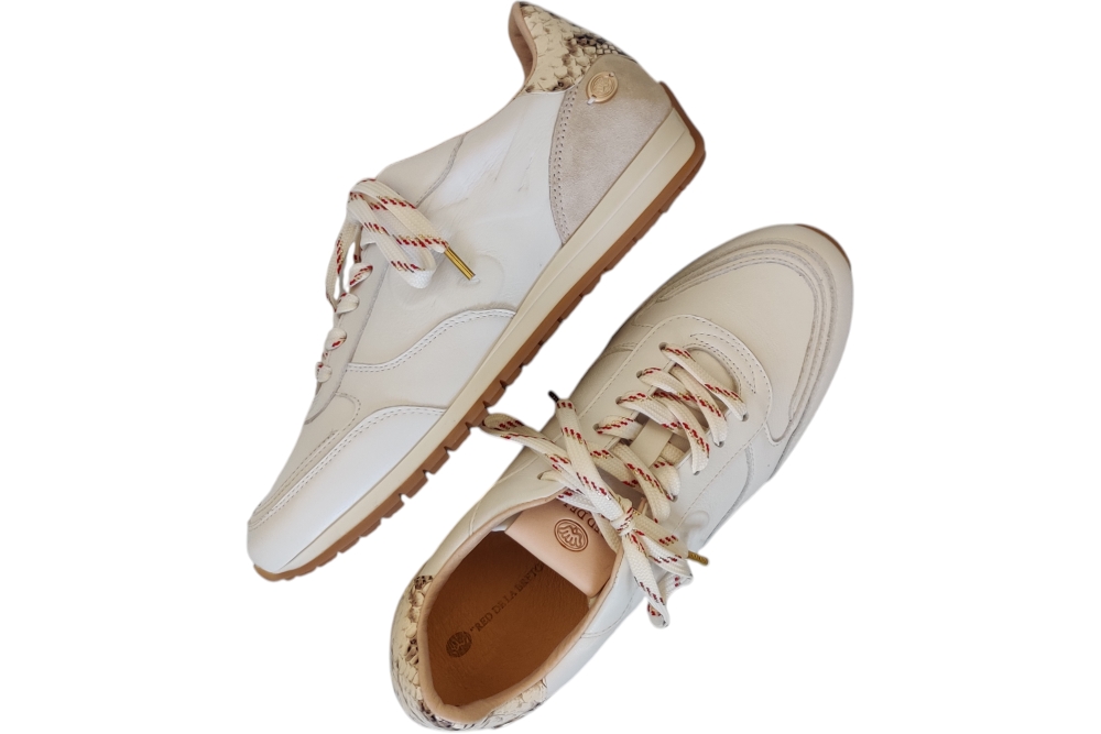 Sneaker van Fred de la Bretoniere. Hippe sneaker in glad leer. Deze sneaker heeft een uitneembaarv voetbed. Kleur wit. Matriaal leer combi. Voering leer. Zool rubber ca 2 cm.