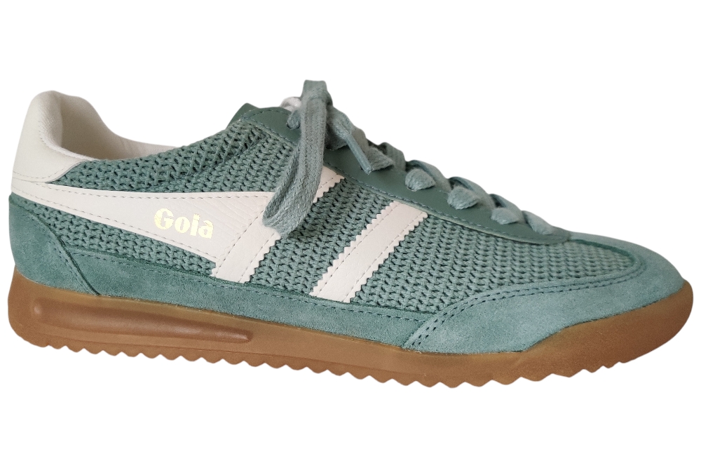 Dames sneaker van GOLA. Sneaker in het groen. Deze sneaker heeft een uitneembaar voetbed. Materiaal: suede stof . Voering: stof. Kleur: groen combi. Zool: rubber. Hakhoogte: ca 2 cm.