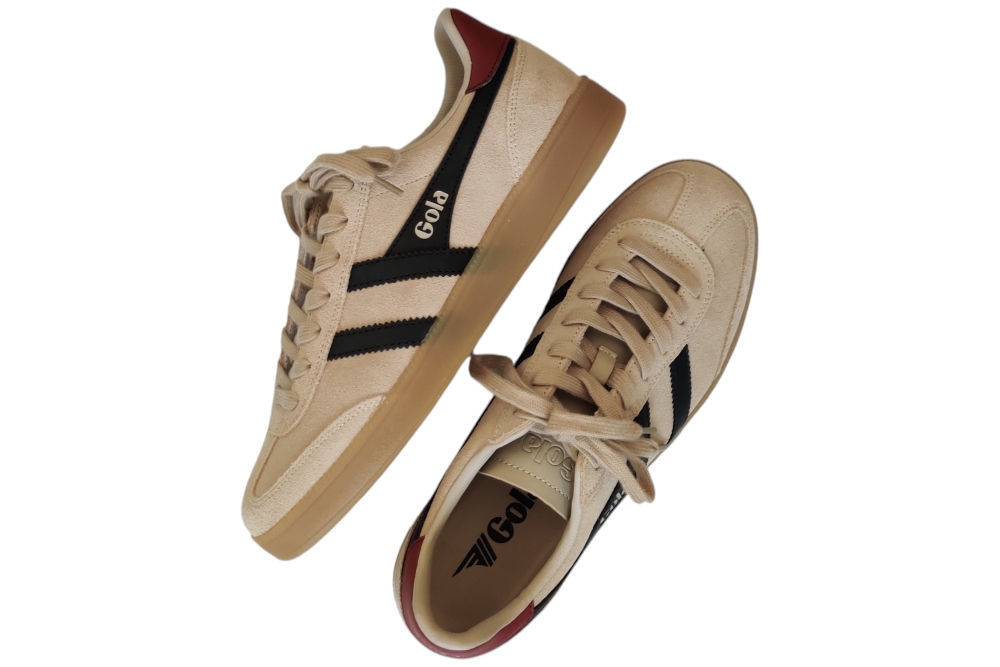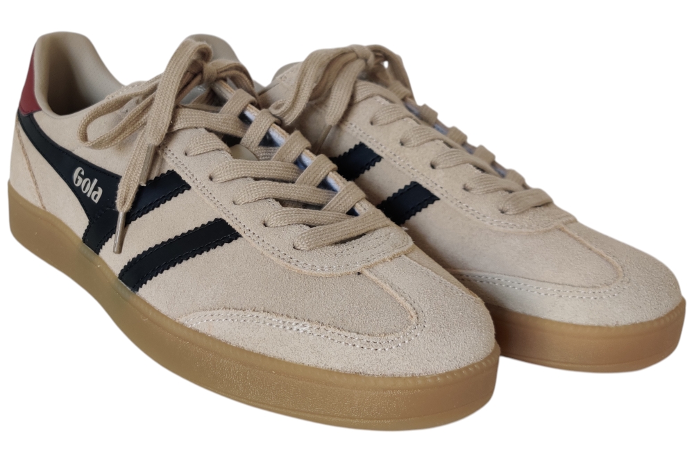 Heren sneaker van GOLA. Sneaker in het beige. Deze sneaker heeft een uitneembaar voetbed. Materiaal: suede . Voering: stof. Kleur: beige combi. Zool: rubber. Hakhoogte: ca 2 cm.