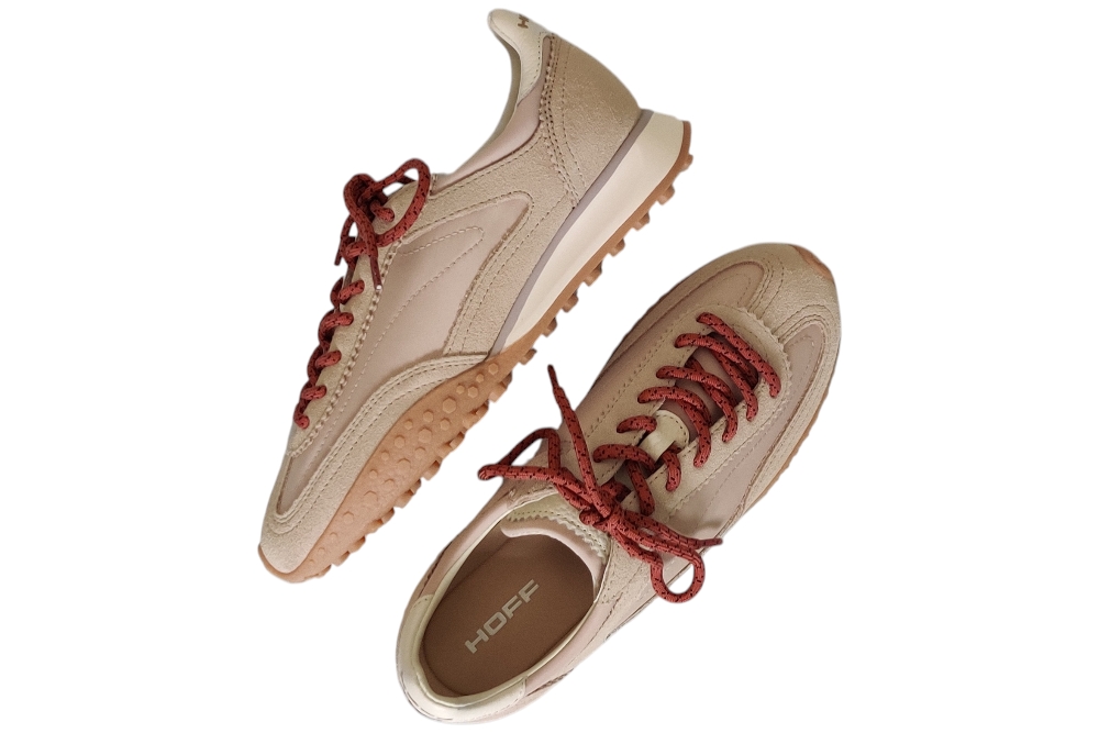 Dames sneaker van Hoff. Basic in verschillende materialen en kleuren. Deze sneaker heeft een uitneembaar voetbed. Materiaal: suede met textiel. Voering:textiel. Kleur:beige combi. Zool: rubber. Hakhoogte: ca 1 cm.
