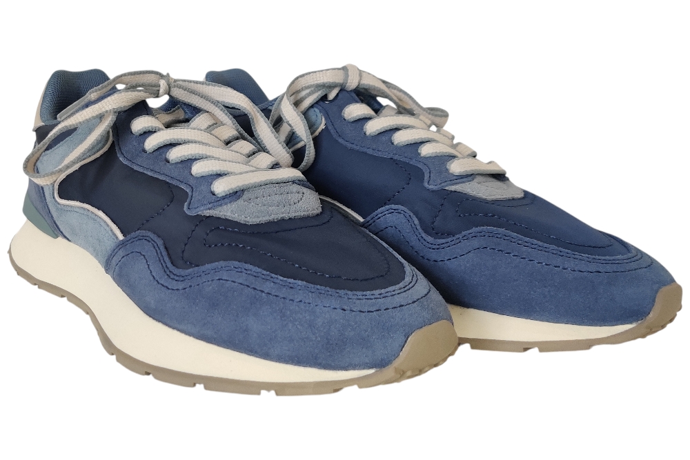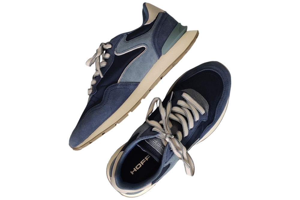 Dames sneaker van Hoff. Basic in verschillende materialen en kleuren. Deze sneaker heeft een uitneembaar voetbed. Materiaal: suede met textiel. Voering:textiel. Kleur: blauw combi. Zool: rubber. Hakhoogte: ca 3 cm.