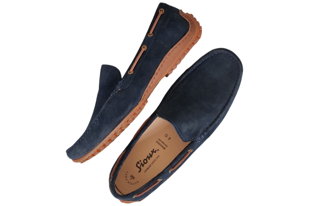 Heren mocassin van Sioux. Instapper in suede. Deze instapper heeft een uitneembaar voetbed. Matriaal Suede. Voering stof leer. Rubbere zool.