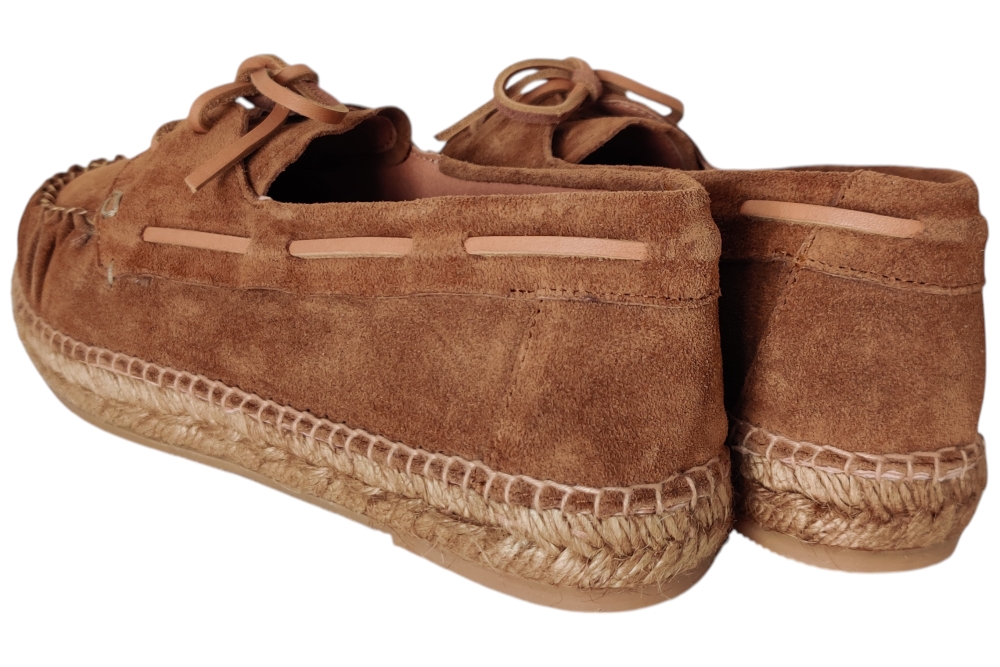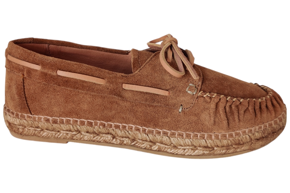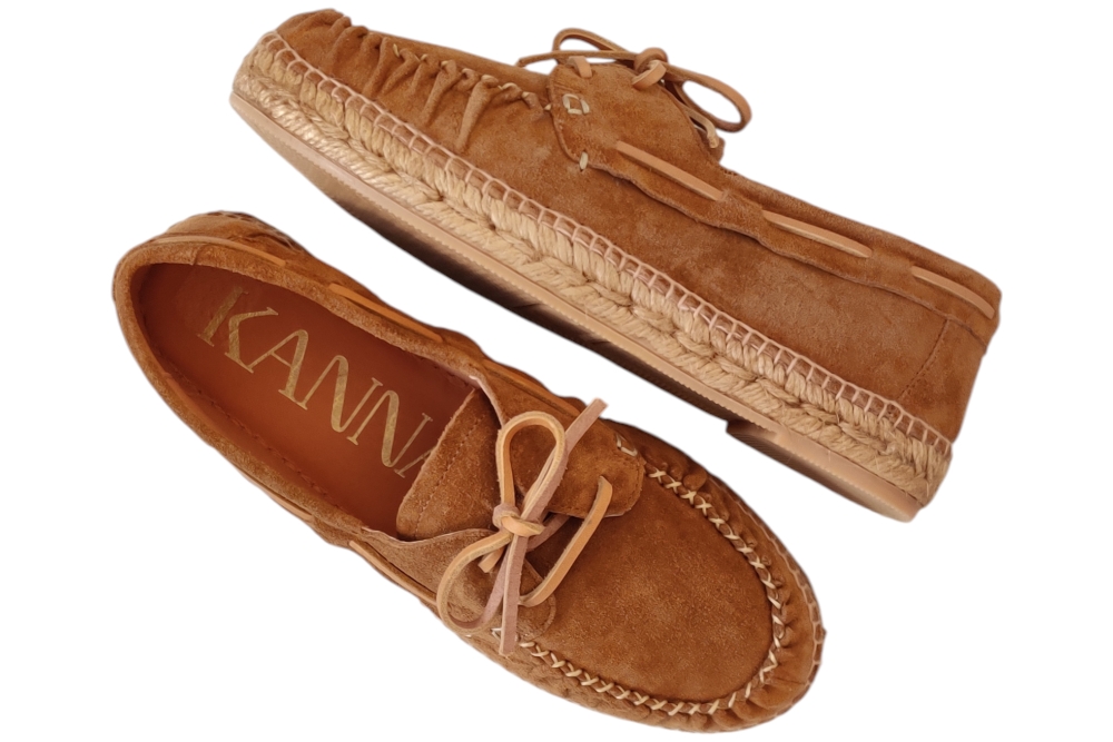 Veterschoen van Kanna. Hippe bootschoen in espedrille stijl van Kanna in het suede met lerenveter.Matriaal suede Voering leer. Kleur cognac. Loopzool rubber ca 2 cm.
