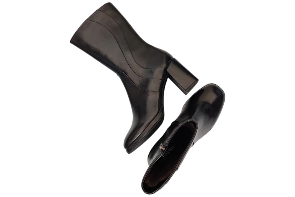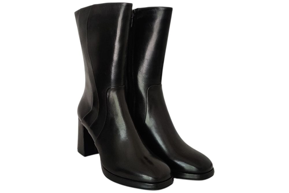Dames laars van Regarde le Ciel. Stoer laarsje in leer met plateau zool. Materiaal: leer. Voering: textiel. Kleur: zwart. Zool: antislip. Hakhoogte: ca 6 cm.
