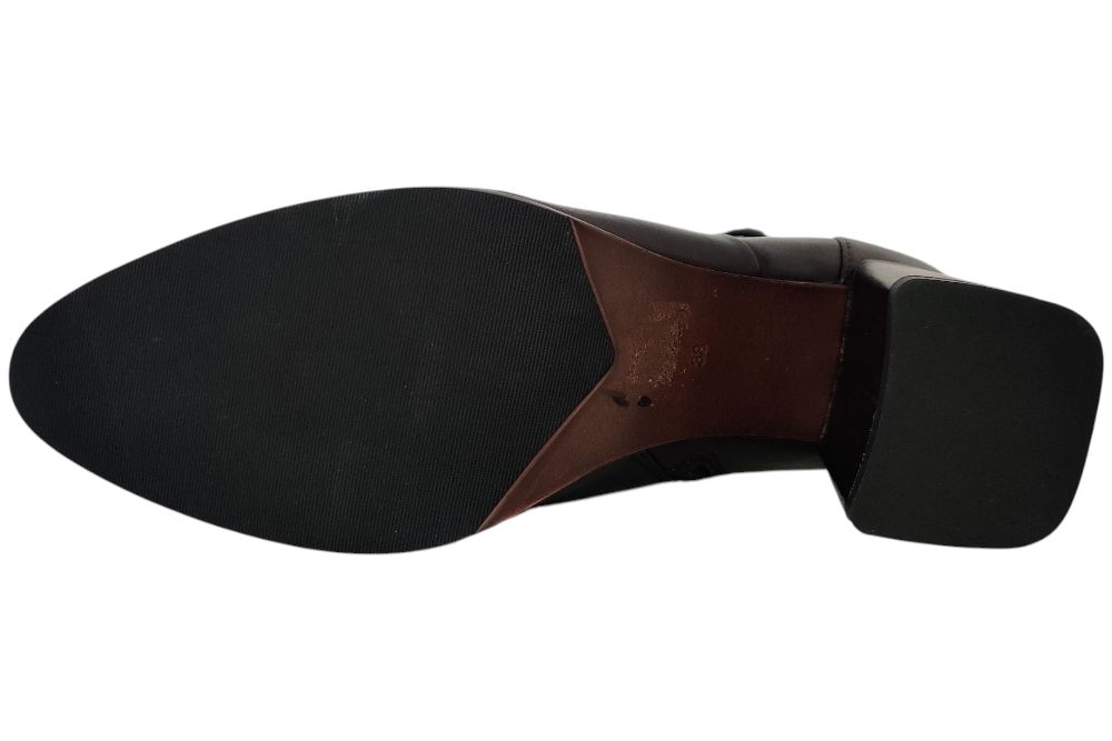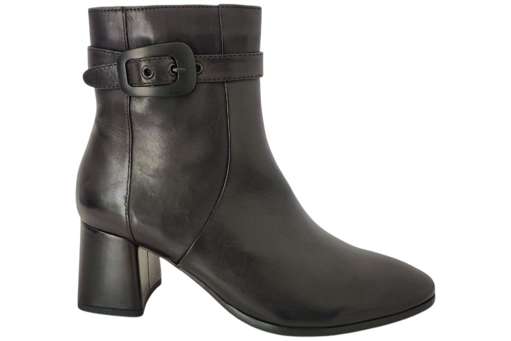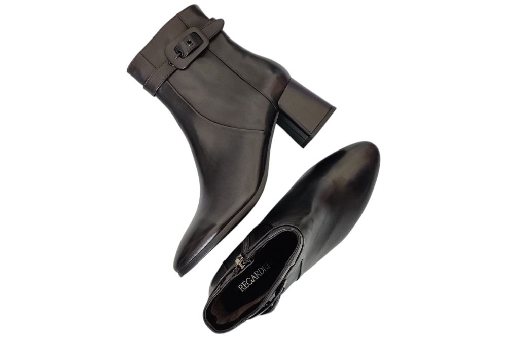 Dames enkellaars van Regarde le Ciel. Klassiek enkellaarsje in leer met band om de enkel. Materiaal: leer. Voering: textiel. Kleur: zwart. Zool: antislip. Hakhoogte: ca 5 cm.