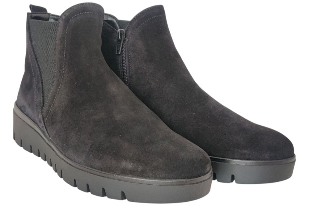 Dames laars van Gabor. Basic laars in chelsea stijl met rits. Deze laars heeft een elastiek op de enkel. Materiaal: suede. Voering: textiel. Kleur: zwart. Zool: rubber. Hakhoogte: ca 3 cm.