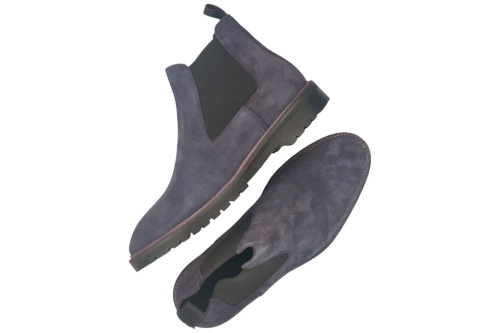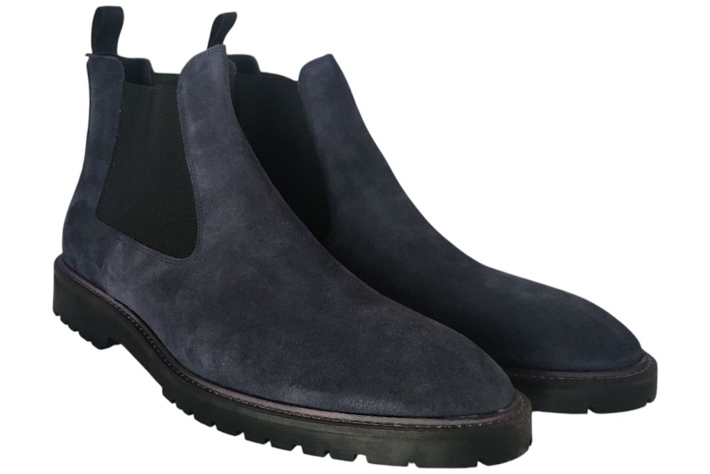 Heren enkellaars van Imasch. Hoge schoen in Chelseastijl. Materiaal: Suede. Voering:leer. Kleur: blauw. Zool: rubber. Hakhoogte: ca 2 cm.