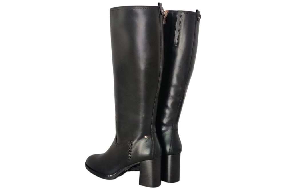 Dames lange laars van Pikolinos. Basic lange laars op profielzool. Materiaal: Leer. Voering: deels leer. deels textiel. Kleur: zwart. Zool: rubber. Hakhoogte: ca 6 cm.