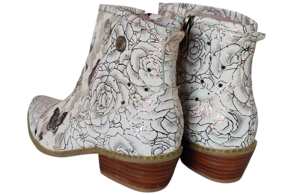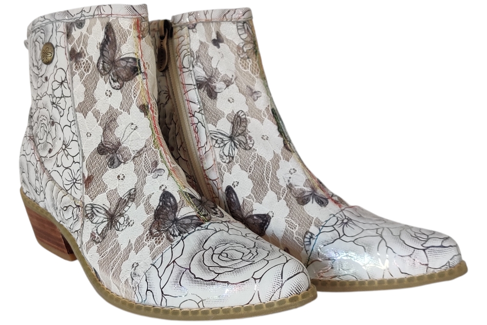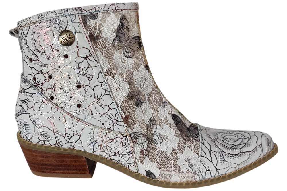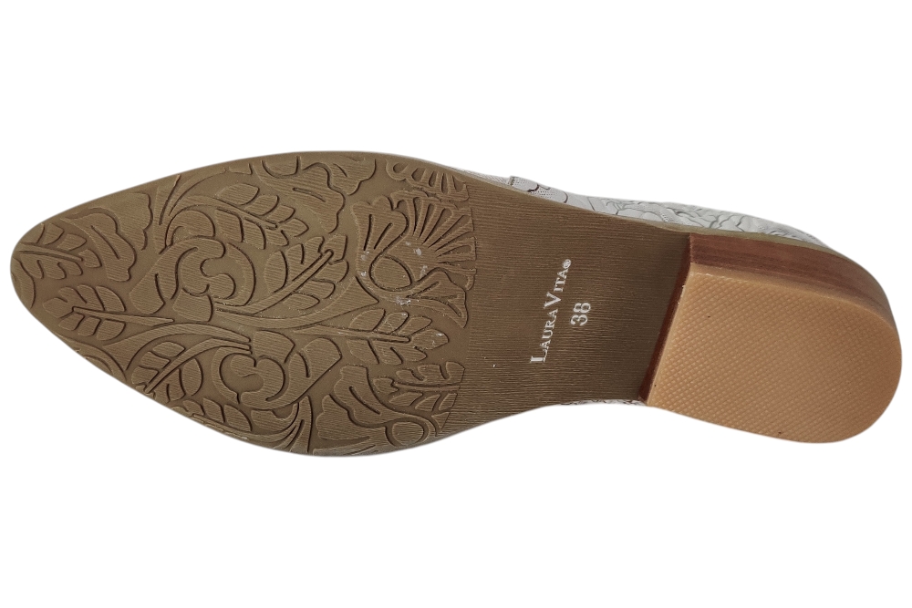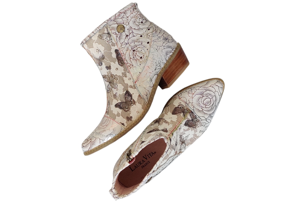 Dames enkellaars van Laura Vita. Stoer maar ook elegant enkellaarsje op hakje. Materiaal: leer combi. Voering: lerer stof. Kleur: beige combi. Zool: rubber. Hakhoogte: ca 2 cm.