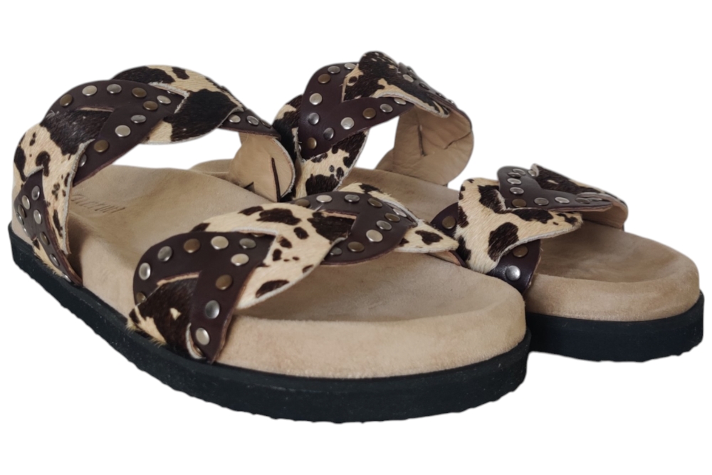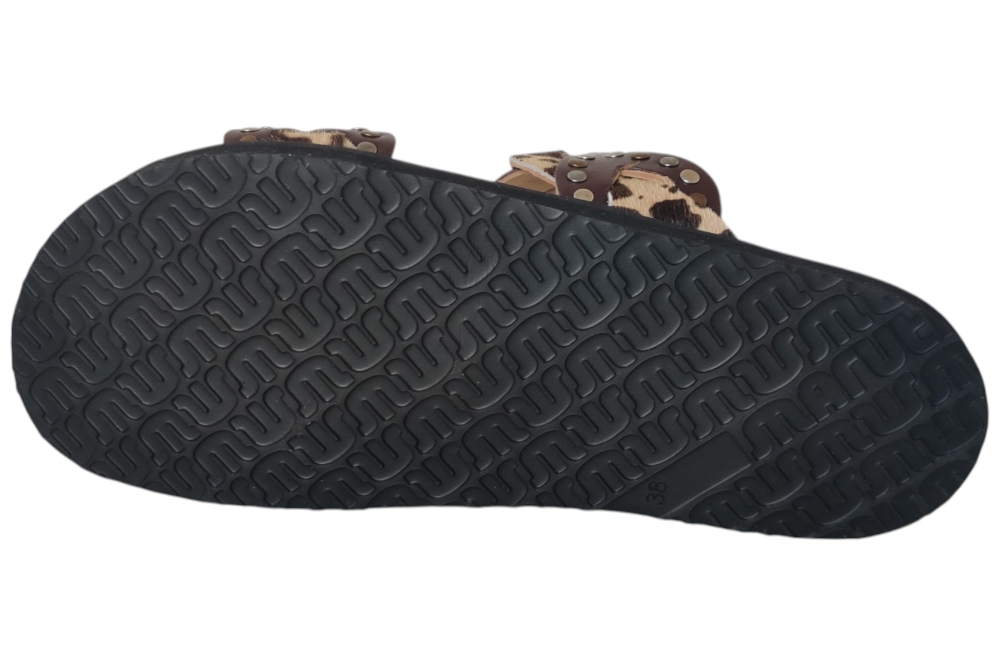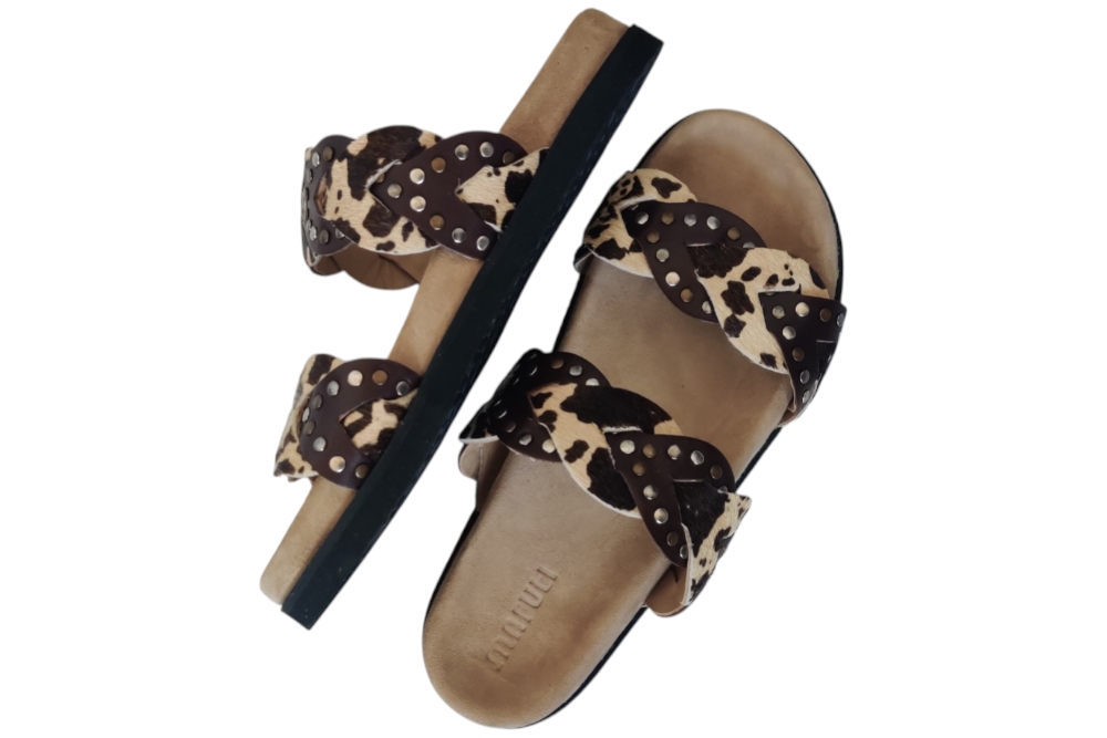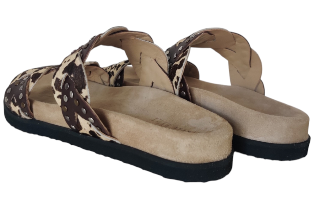 Slipper van Maruti. Slipper in een leuke combinatie van matrialen en kleuren. Matriaal leer. Voering leer. Kleur bruin combi.Zool rubber ca 2 cm.