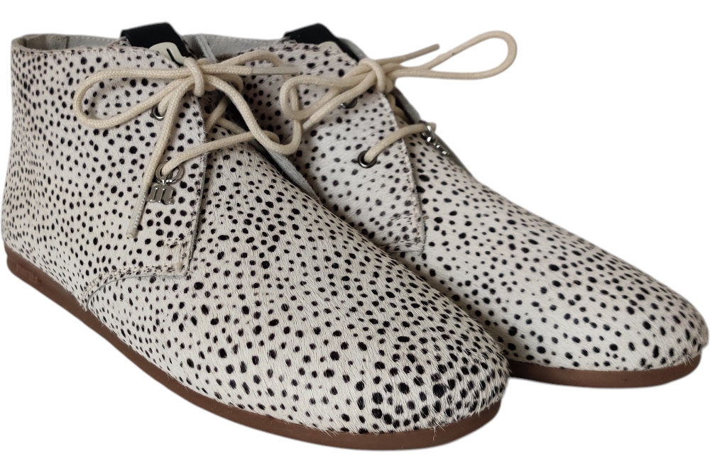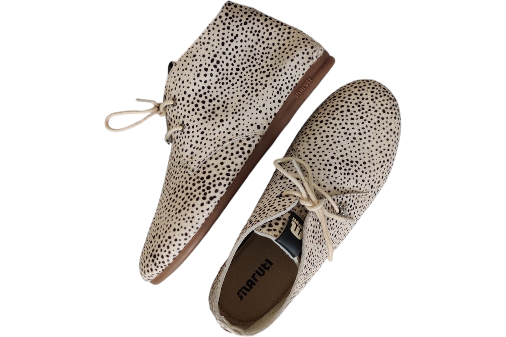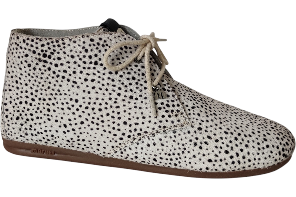 Dames veterboot van Maruti..Veterboot in het leer in een leuike print. Materiaal:leer. Voering: leer. Kleur: offwhite. Zool: rubber. Hakhoogte: ca 1 cm.