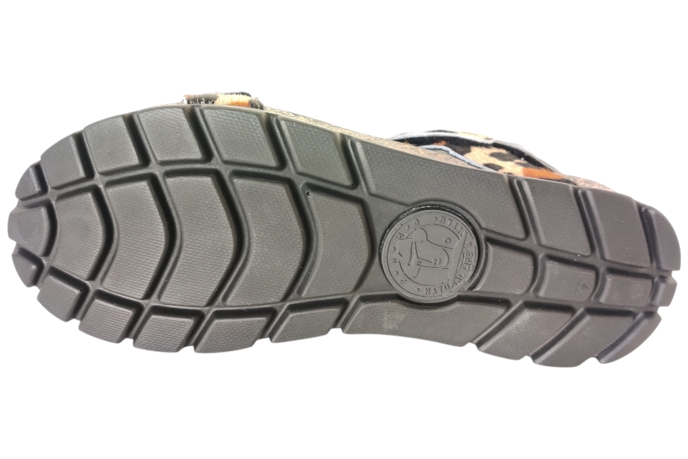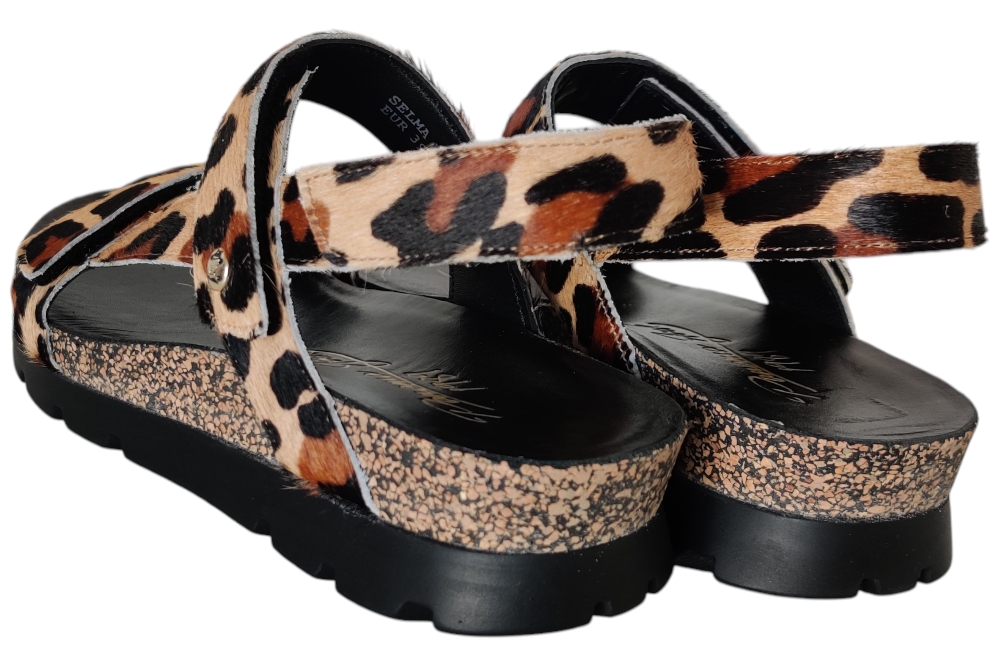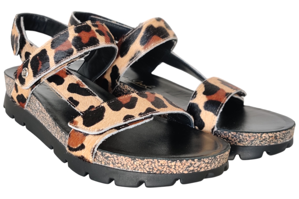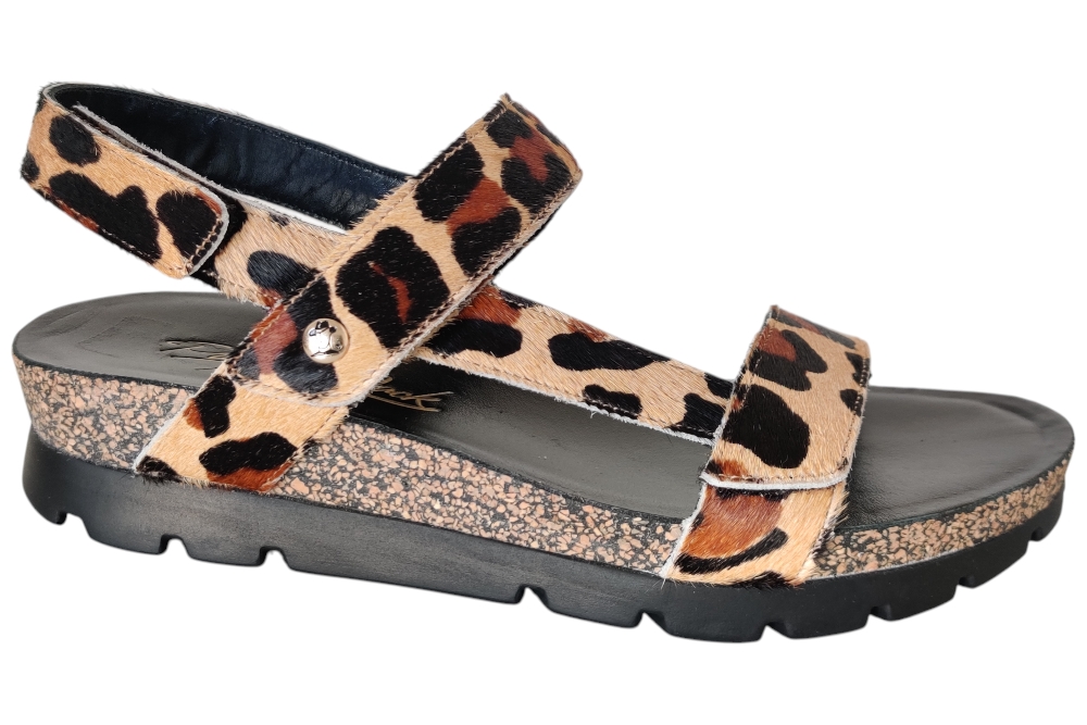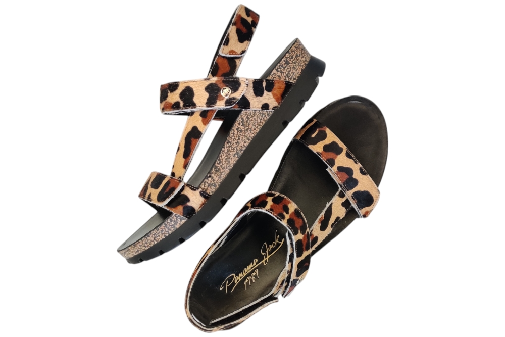 Sandaal van Panama Jack. Sandaal met goed voetbed in een leuke leopard print. De sluiting bestaat uit drie klittebanden.Matriaal leer combi.Voering leer.Kleur multi color bruin..Zool rubber ca 3 cm