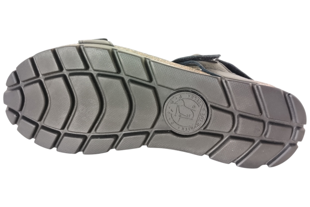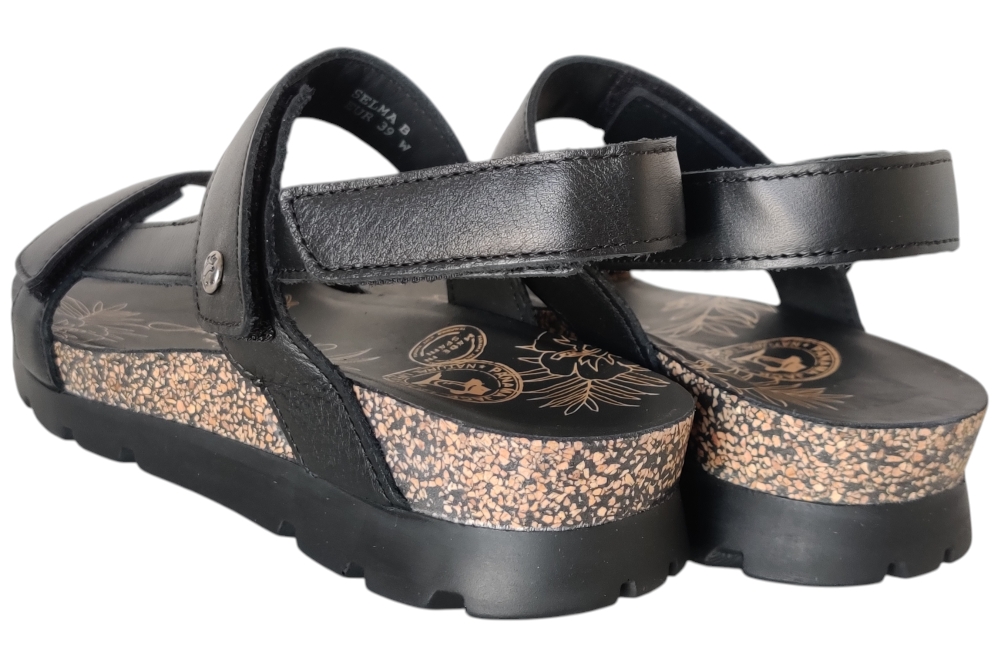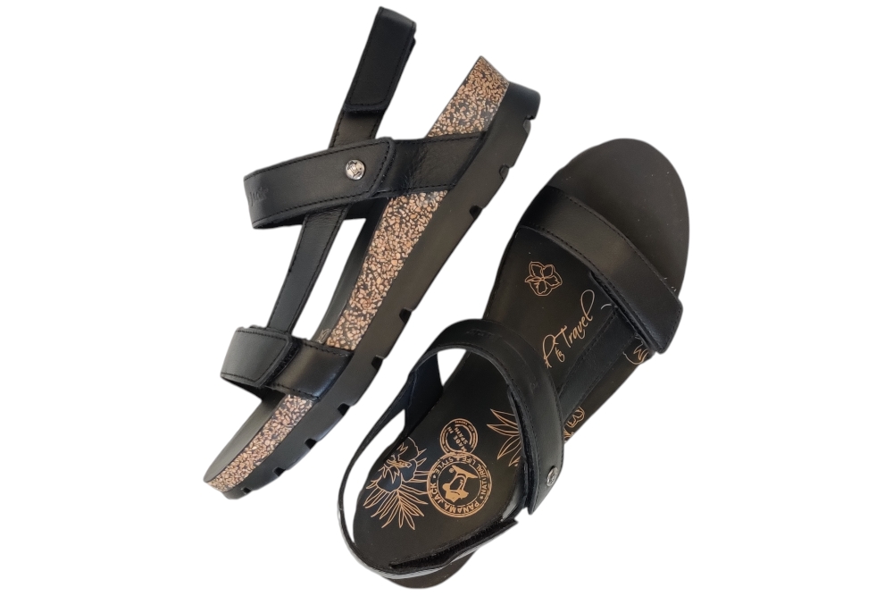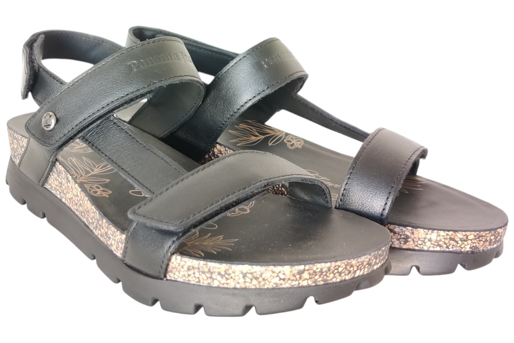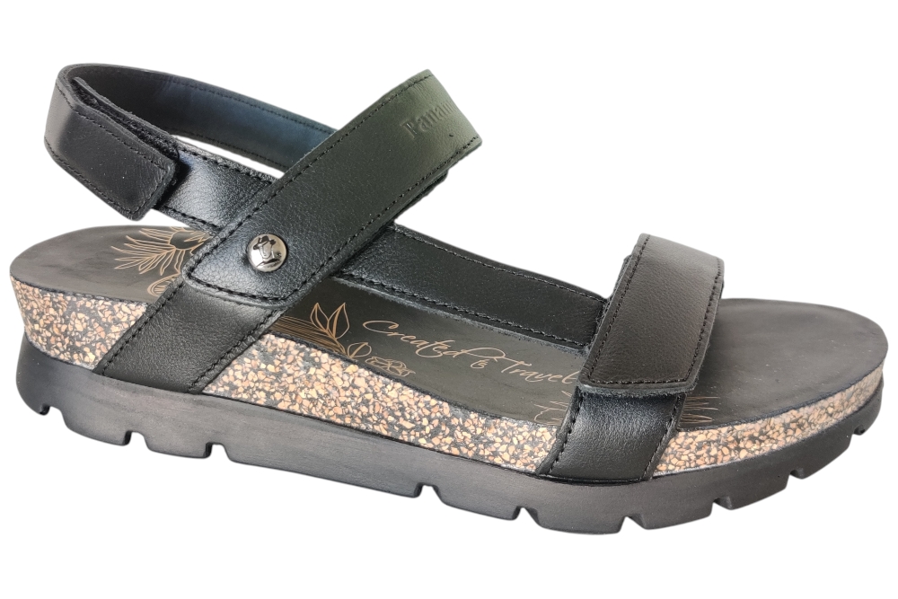 Sandaal van Panama Jack. Sandaal met goed voetbed. De sluiting bestaat uit drie klittebanden.Matriaal leer.Voering leer.Kleur zwart..Zool rubber ca 3 cm