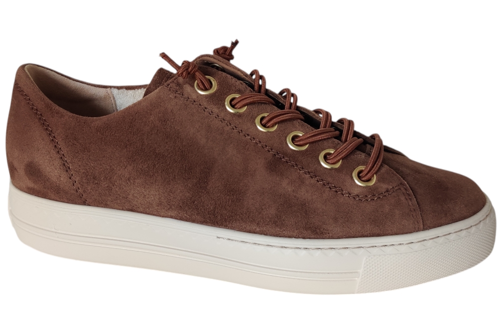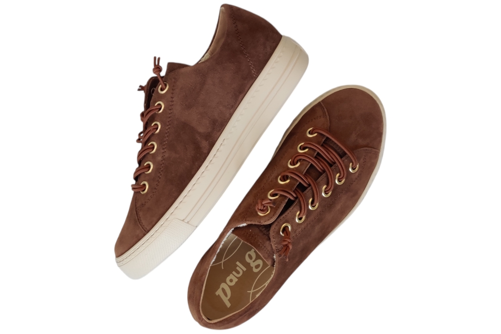 Deze stijlvolle Paul Green sneakers in bruin combineren comfort met moderne uitstraling. Matriaal nubuck Voering eer en katoen. Kleur bruin..Zool rubber ca 3 cm.