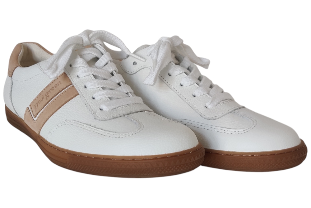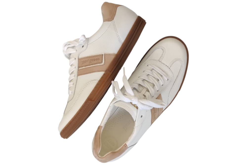 Deze stijlvolle Paul Green sneakers in wit combineren comfort met moderne uitstraling. Matriaal leer Voering leer en katoen. Kleur wit..Zool rubber ca 2 cm.