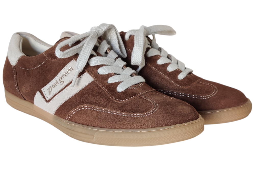 Deze stijlvolle Paul Green sneakers in bruin combineren comfort met moderne uitstraling. Matriaal suede Voering leer en katoen. Kleur bruin..Zool rubber ca 2 cm.