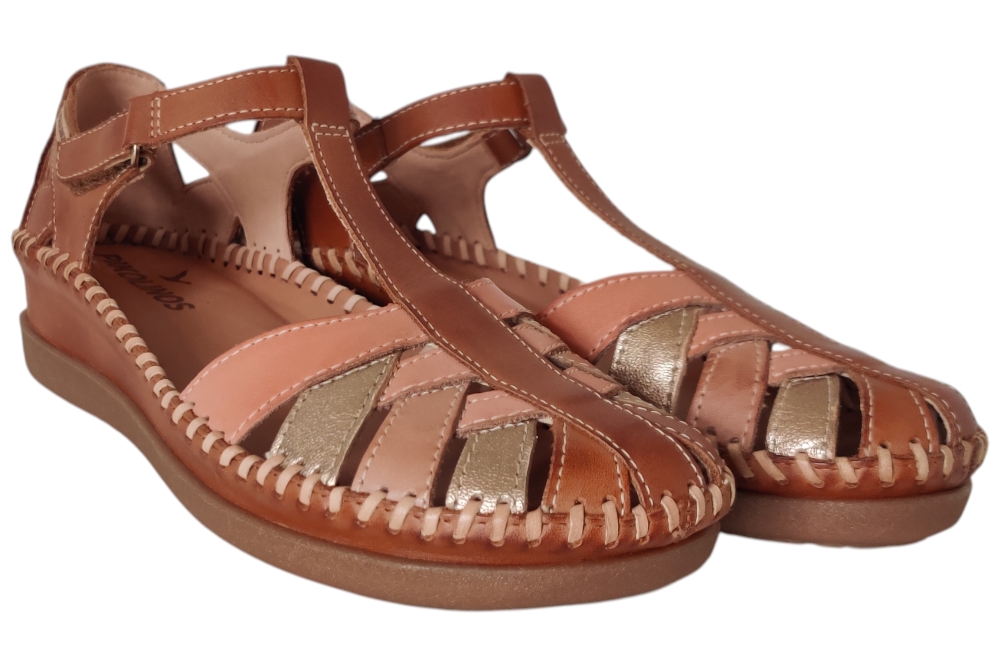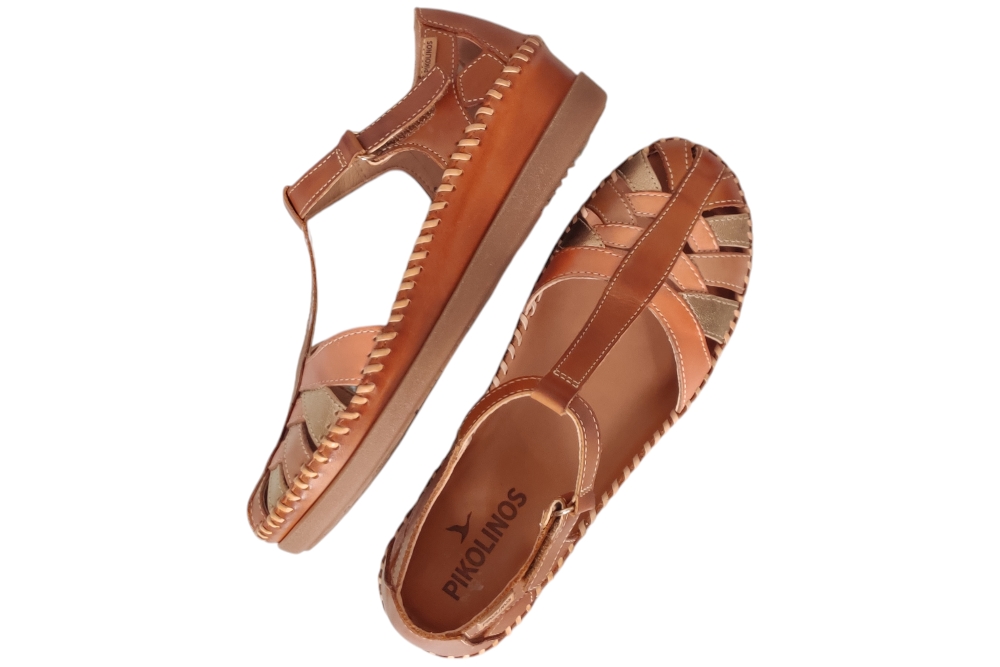 Sandaal van Pikolinos. Sandaal met een dichte neus en hiel met klitteband sluiting. deze sandaal heeft een soepel leer voetbed.