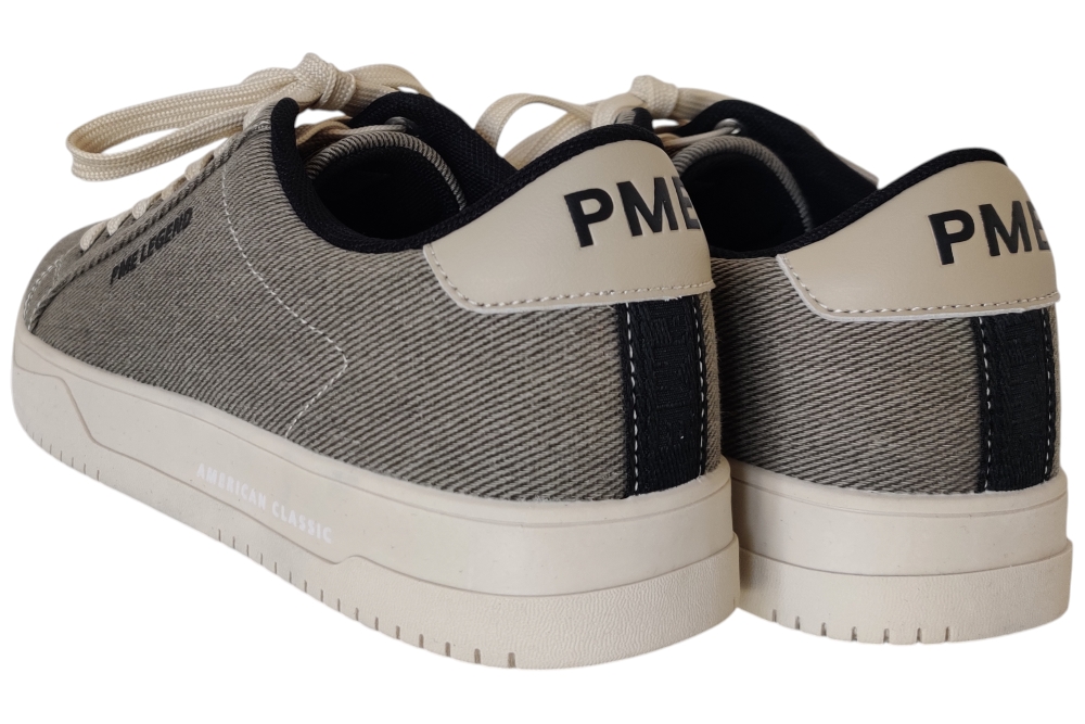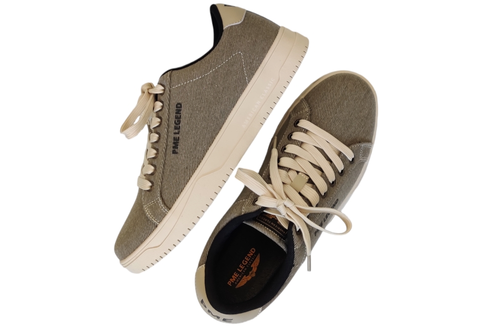 Veterschoen van Pme Legend..Hippe zomerschoen type canvasschoen met los voetbed..Deze veterschjoen heeft een stevige loopzool. Matriaal canvas.. Voering stof.Kleur taupe. Zool rubber ca 3 cm.