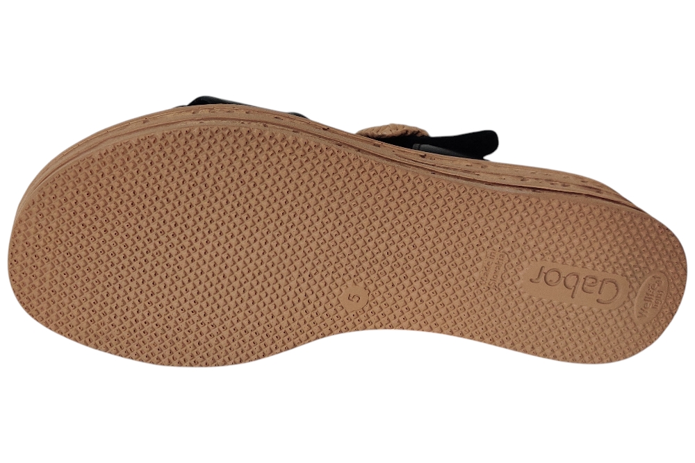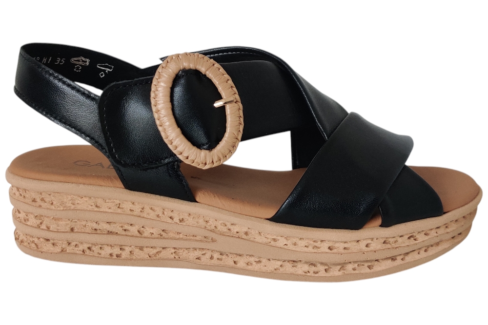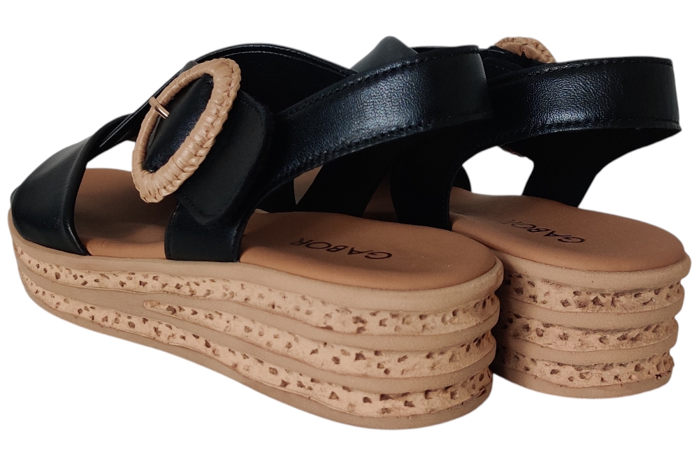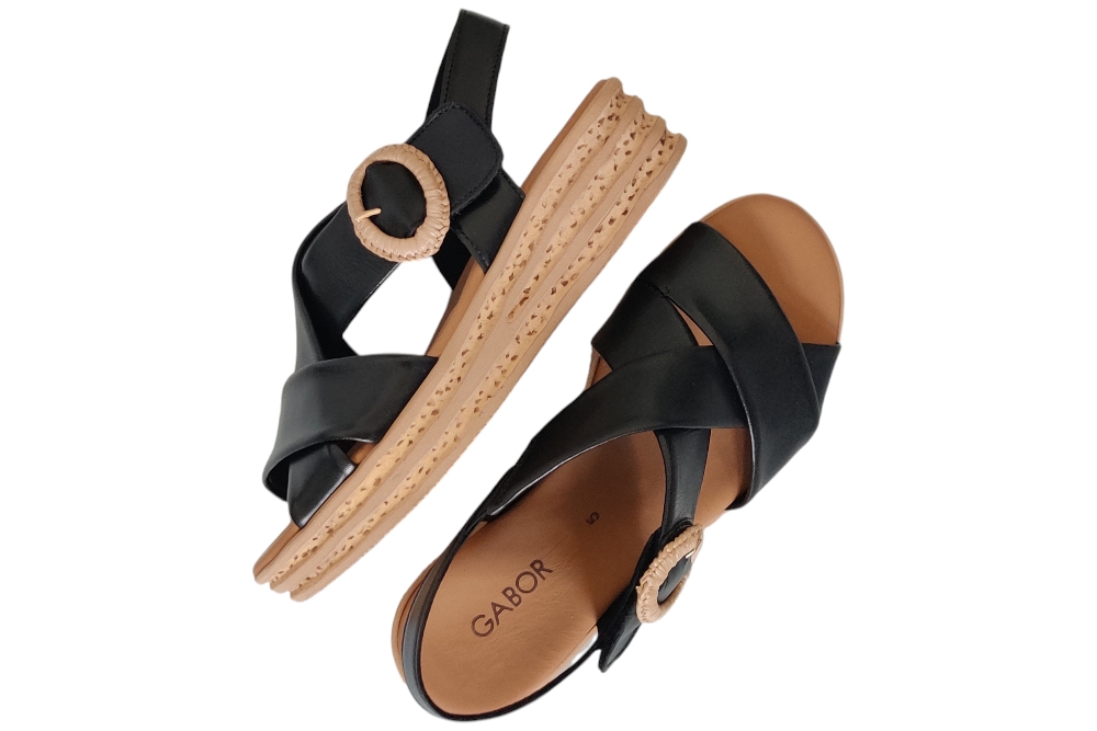 Dames sandaal van Gabor. Sandaal met verstelbare wreefband, op een dikke zool. Materiaal: leer. Voering: leer. Kleur: zwart. Zool: rubber. Hakhoogte: ca 4 cm.