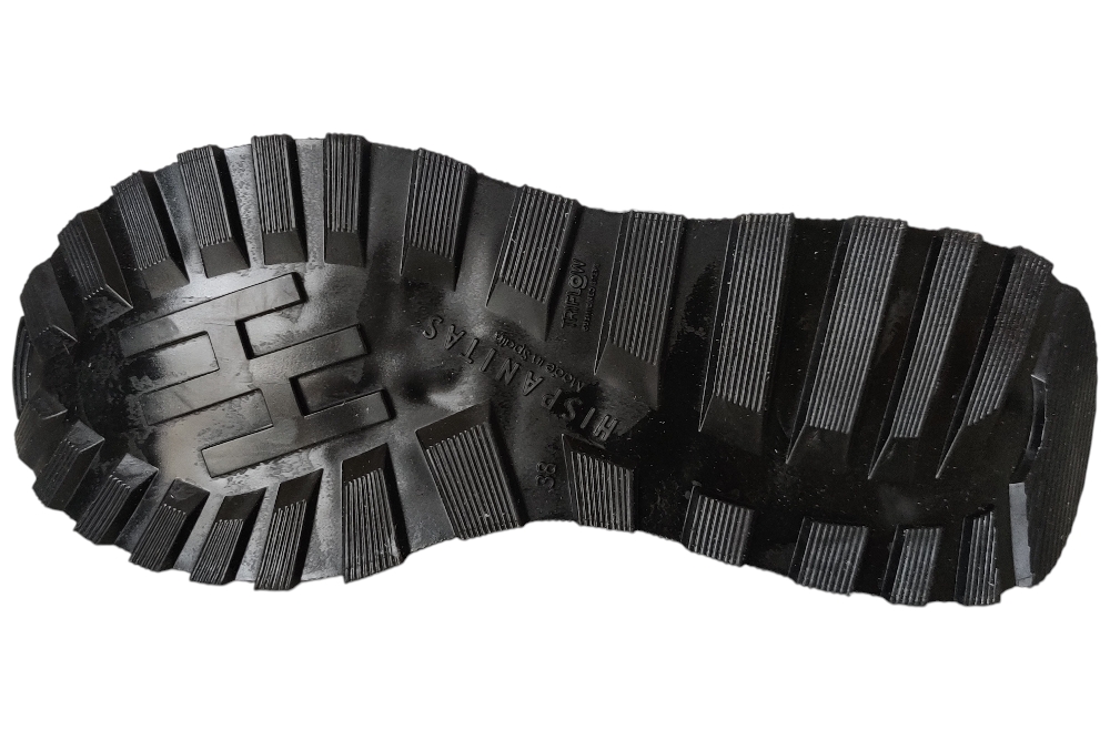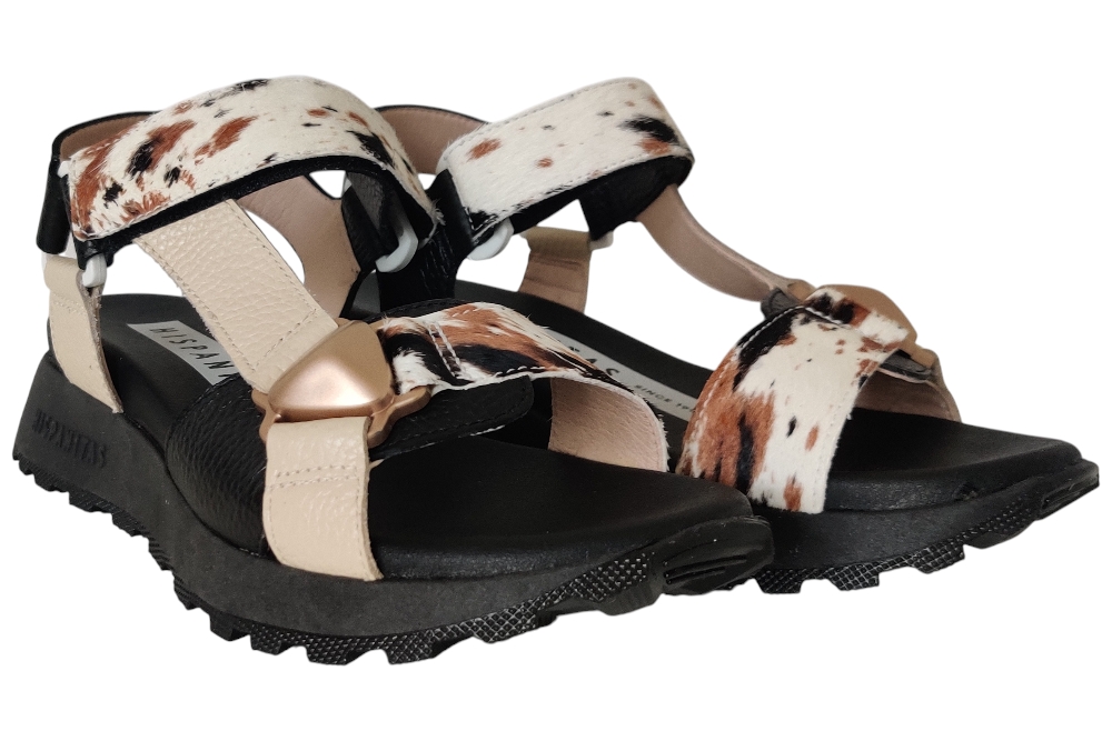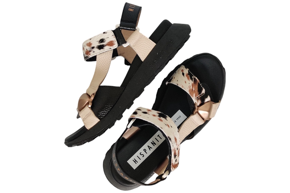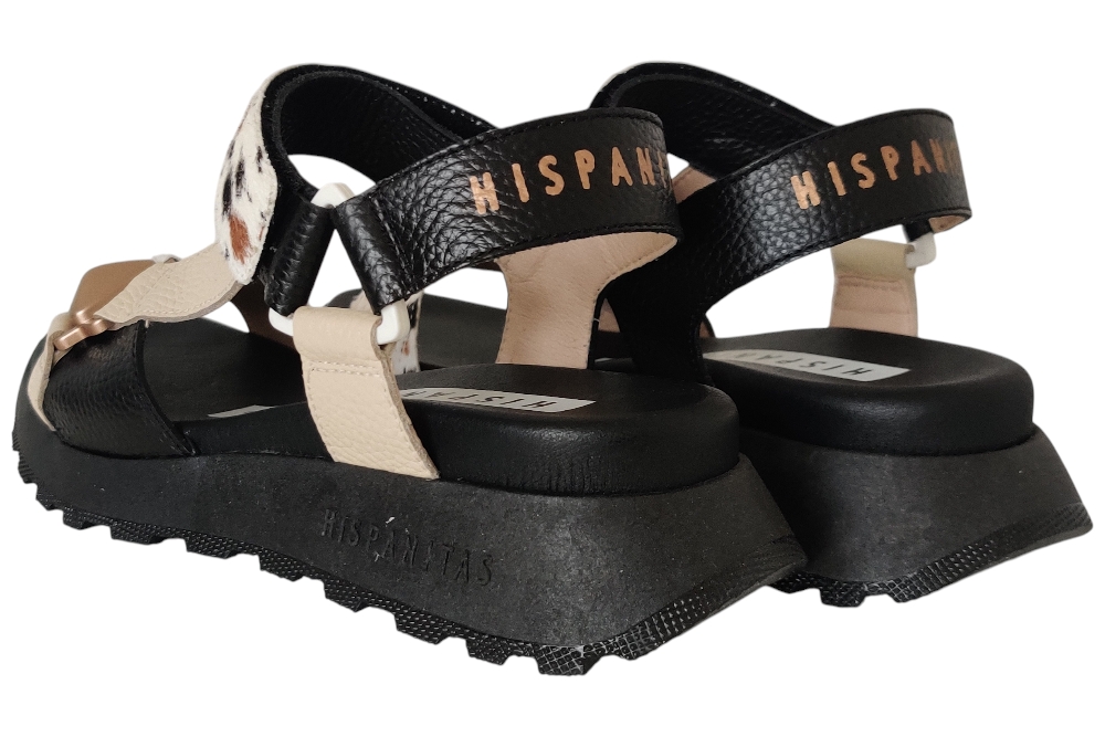 Sandaal van Hispanitas. Sandaal met klitband sluiting. Hippe kleurcombinatie zwart. Matriaal leer Voering leer. Zool rubber ca 3cm