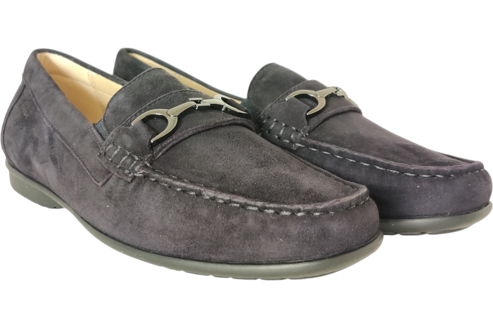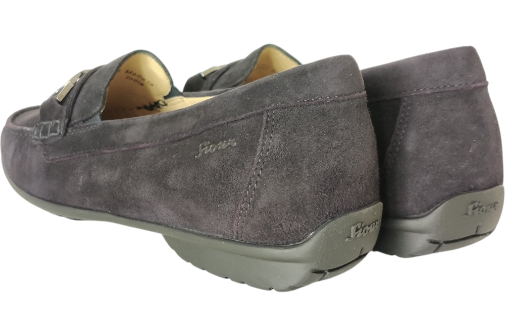 Dames instapper van Sioux. Mocassin achtige instapper .Instapper heeft een ketting op de wreef. Deze instapper heeft een uitneembaar voetbed. Materiaal: suede. Voering: leer. Kleur:blauw. Zool: rubber. Hakhoogte: ca 2 cm.