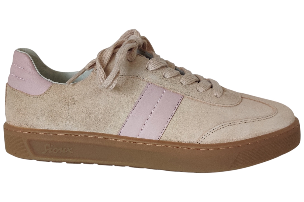 Dames sneaker van Sioux. Deze sneaker heeft een uitneembaar voetbed. Materiaal: suede. Voering: stof/leer. Kleur: beige. Zool: rubber. Hakhoogte: ca 2 cm.