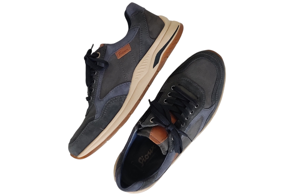 Heren sneaker van Sioux. Deze sneaker heeft een uitneembaar voetbed. Materiaal: suede. Voering: stof/leer. Kleur:blauw. Zool: rubber. Hakhoogte: ca 3 cm.