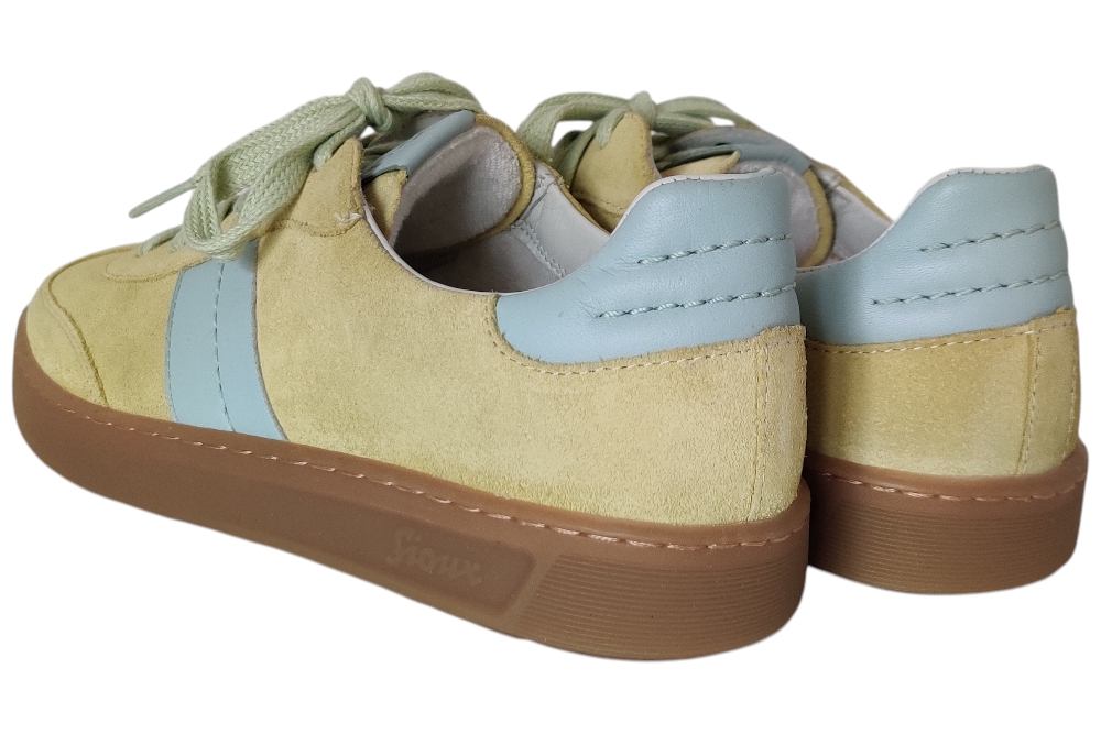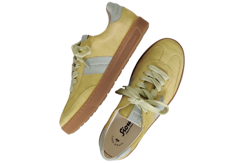 Dames sneaker van Sioux. Deze sneaker heeft een uitneembaar voetbed. Materiaal: suede. Voering: stof/leer. Kleur:geel. Zool: rubber. Hakhoogte: ca 2 cm.