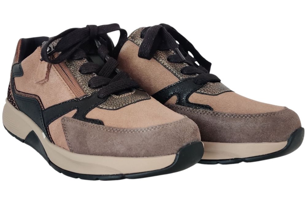 Dames sneaker van Gabor. Sneaker met uitneembaar voetbed.Rits sluiting. Materiaal: suede leer combi Voering: leer .. Kleur: brons beige combi. Zool: rubber. Hakhoogte: ca 3 cm