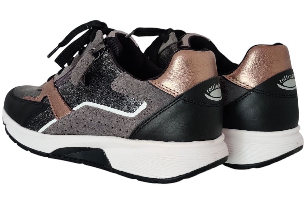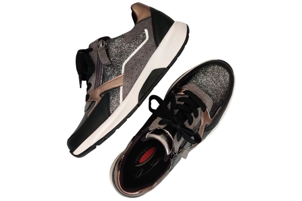 Dames sneaker van Gabor.De rolling soft is ontwikkeld voor een comfortabele afwikkeling. Sneaker in leer combi in het zwart grijs combi. Deze sneaker heeft één rits.Een losse binnenzool Materiaal: leer combi. Voering: stof. Kleur: zwart grijs. Zool: rubbe