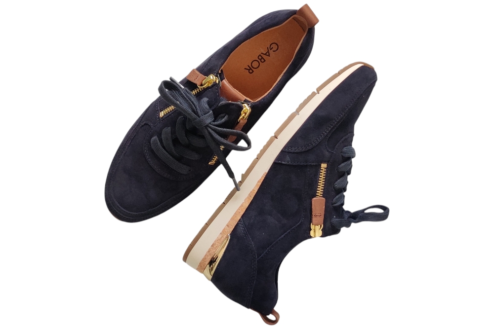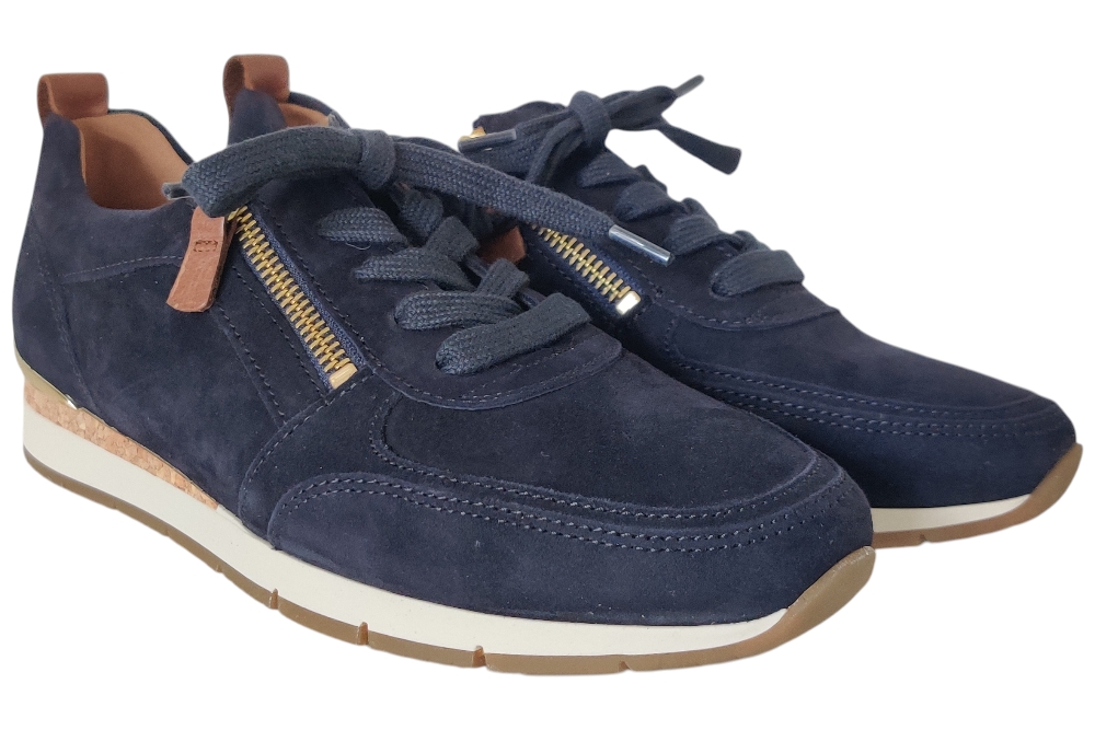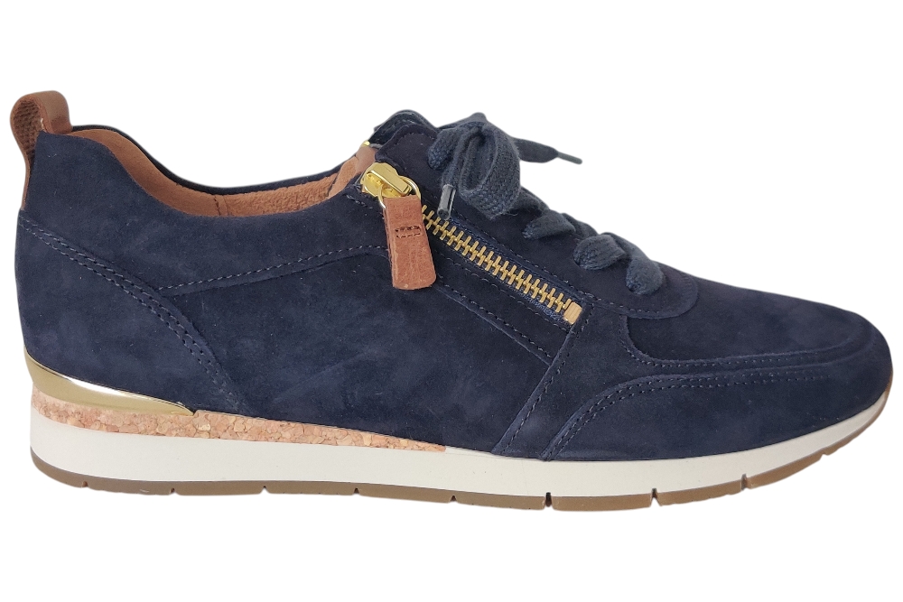 Dames sneaker van Gabor. Sneaker met Rits. Materiaal: Suede combi. Voering: leer stof.Losse binnenzool, Kleur: Blauw. Zool: rubber. Hakhoogte: ca 3 cm.