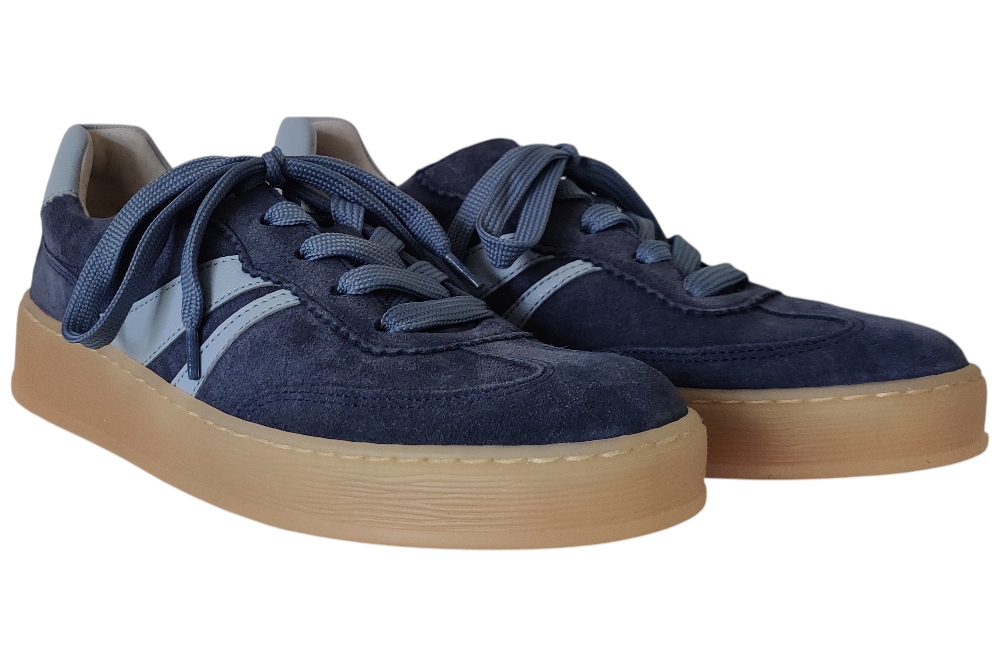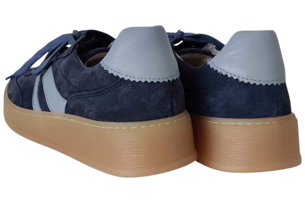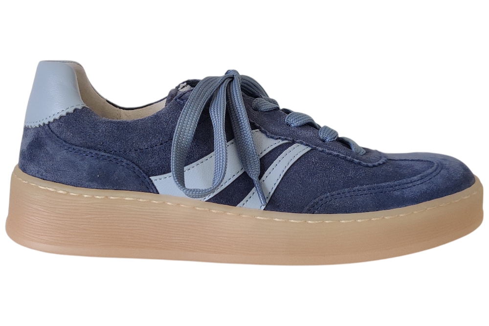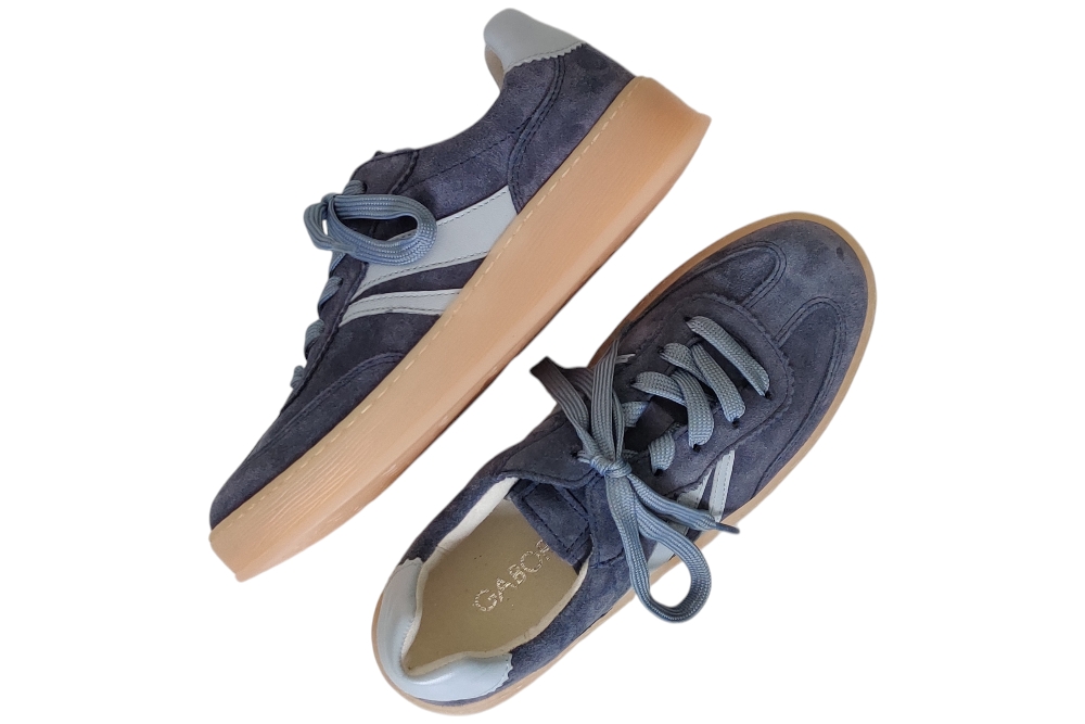 Dames sneaker van Gabor. Hippe sneaker met leuke details. Materiaal: Suede combi. Voering: leer stof.Losse binnenzool, Kleur: Blauw. Zool: rubber. Hakhoogte: ca 3 cm.