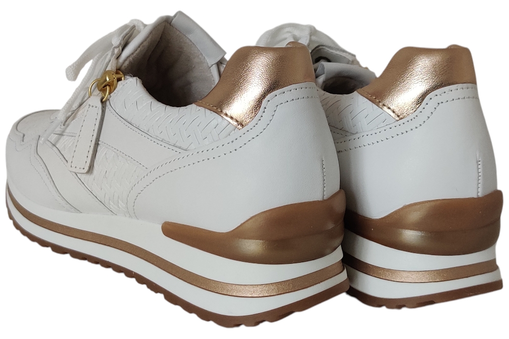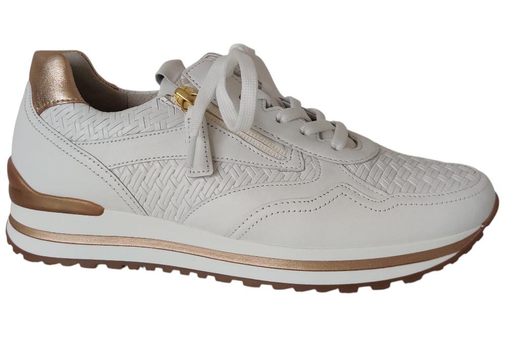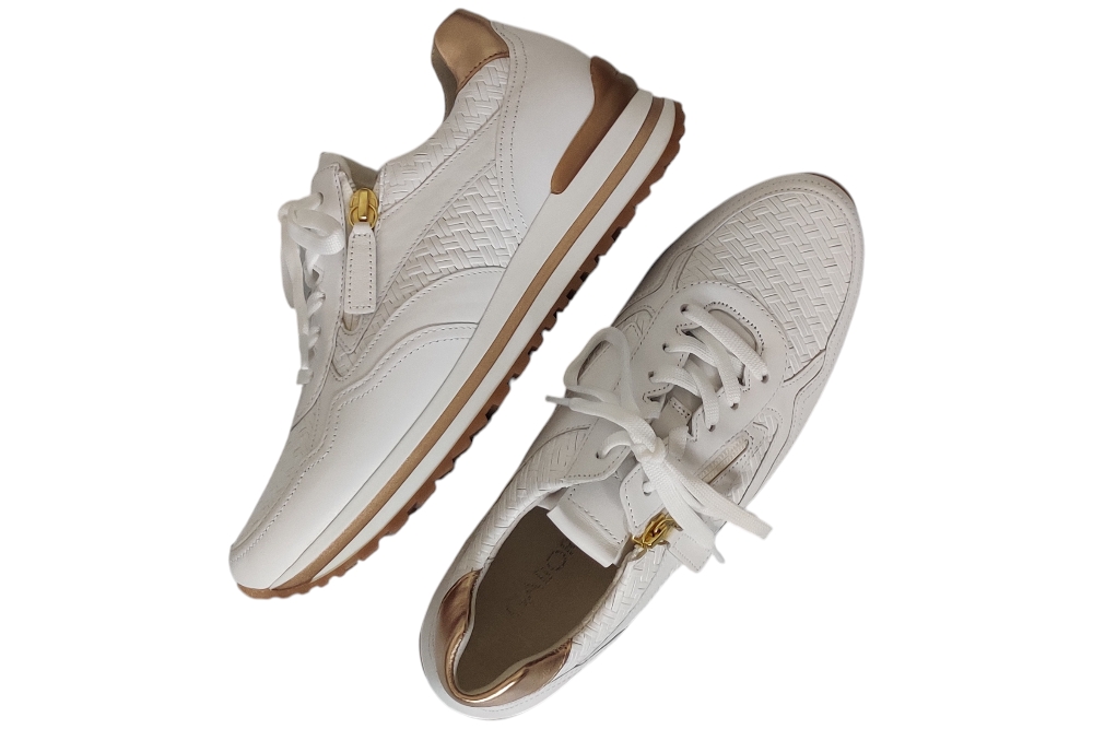 Dames sneaker van Gabor. Sneaker met uitneembaar voetbed. Materiaal:leer combi Voering: leer. Kleur: Wit. Zool: rubber. Hakhoogte: ca 3 cm.