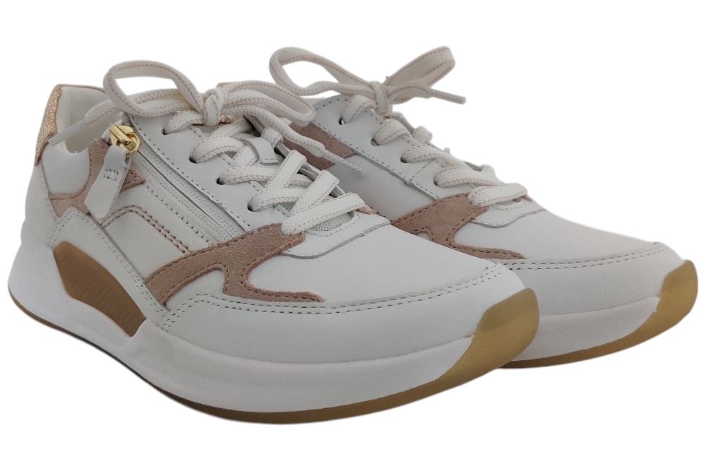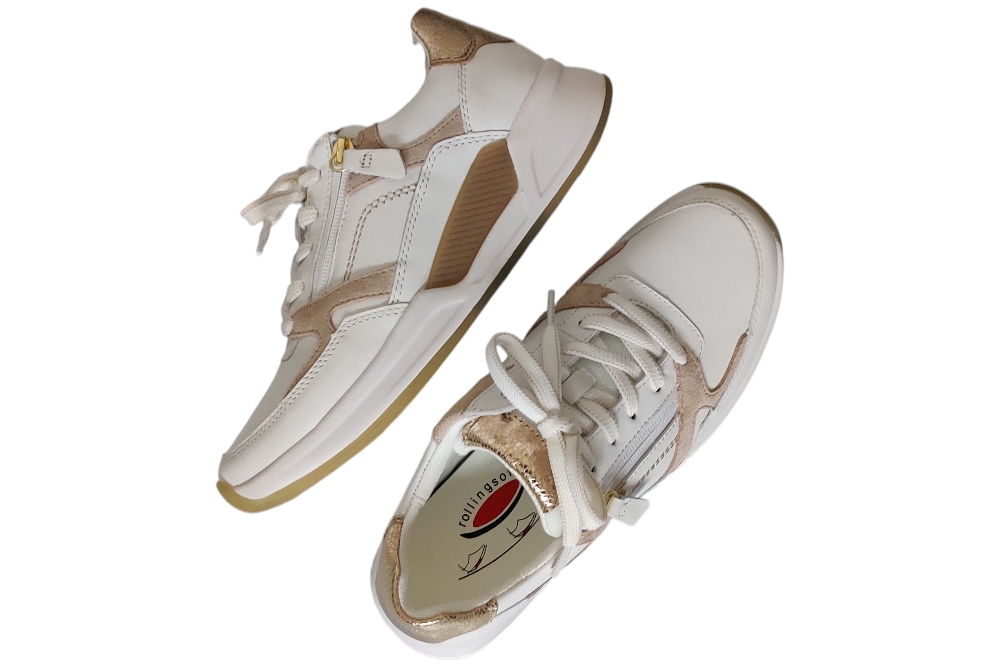 Dames sneaker van Gabor. Sneaker de rolling soft voor een comfortabele afwikkeling. Materiaal: Leer combi. Voering: leer stof.Losse binnenzool, Kleur: Wit. Zool: rubber. Hakhoogte: ca 3 cm.