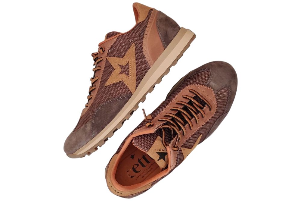 Heren sneaker van Cetti. Sneaker in verschillende materialen in de kleur groen. Deze sneaker heeft elastische veters. Materiaal: Suede combi. Voering: deels leer. deels textiel.Losse binnenzool. Kleur: bruin combi. Zool: rubber. Hakhoogte: ca 3 cm.
